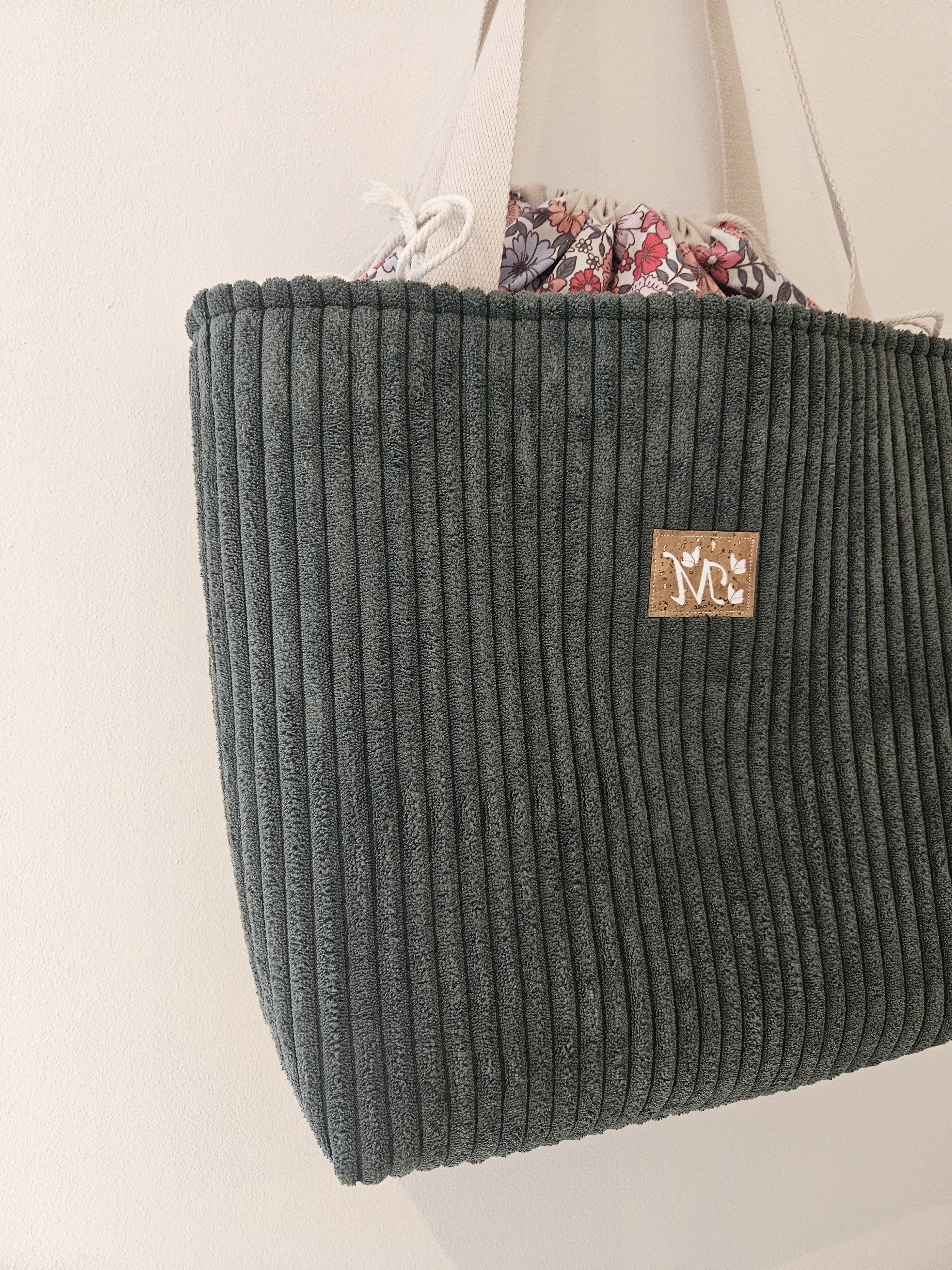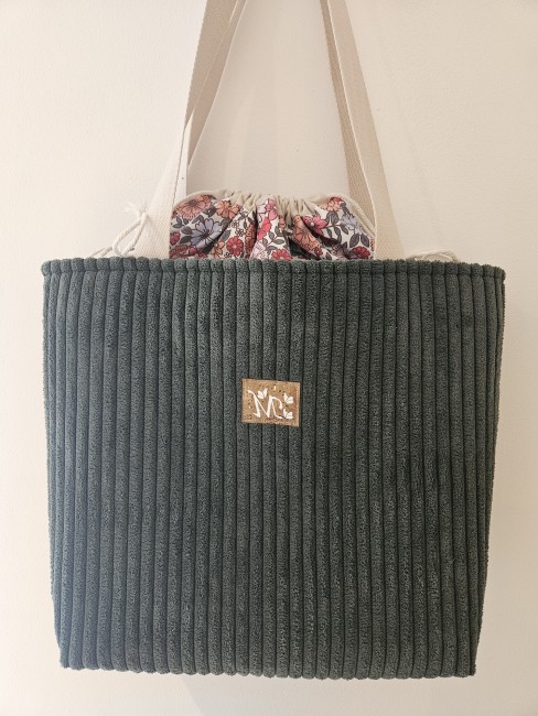 Cabas velours coloris vert forêt