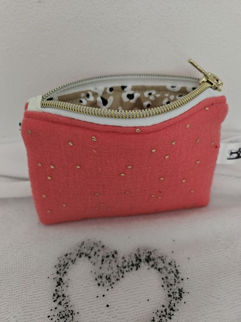 Porte monnaie réalisé en Tissus double gaze à pois dorés.
