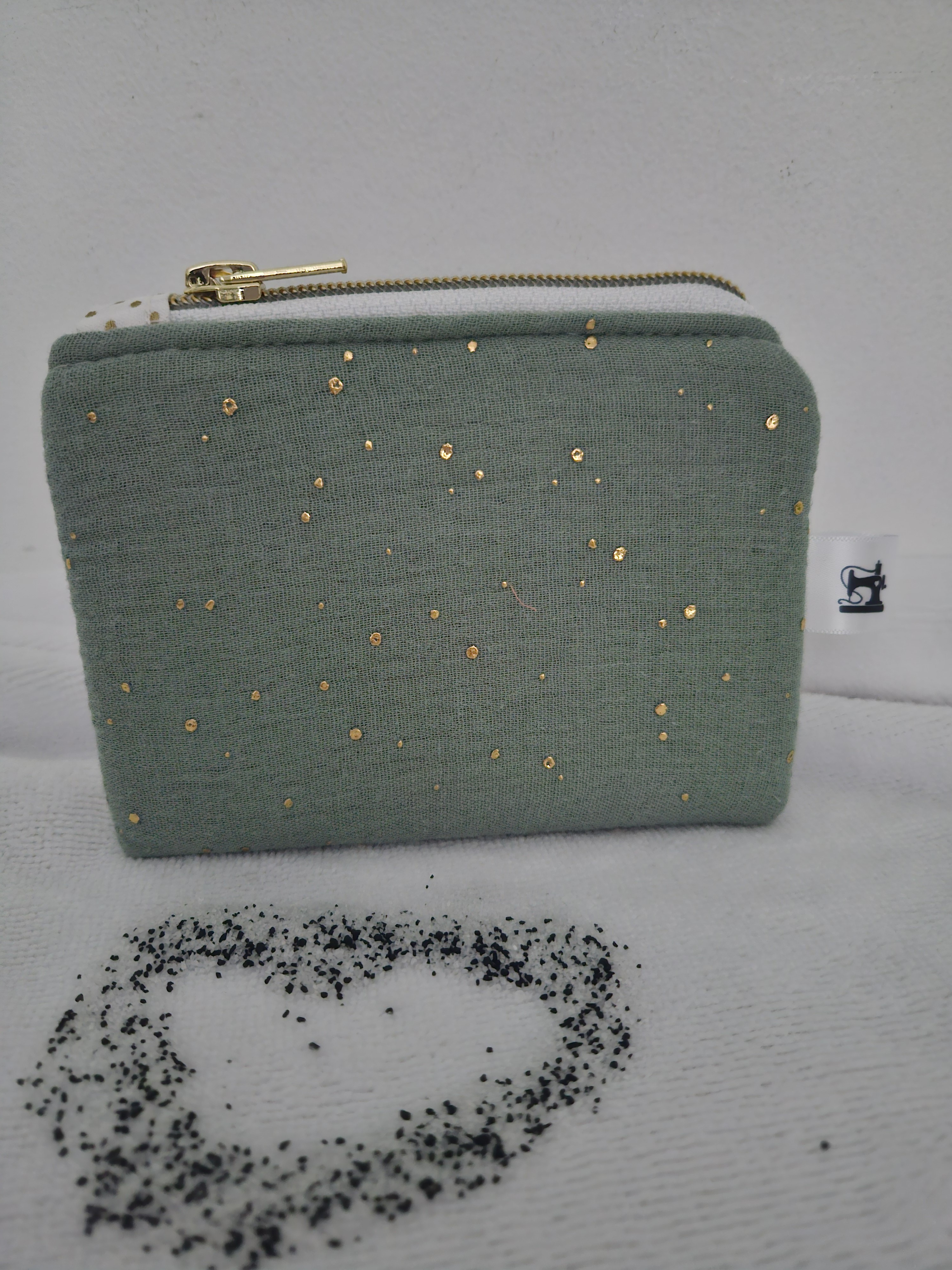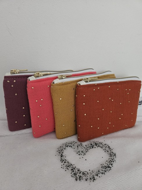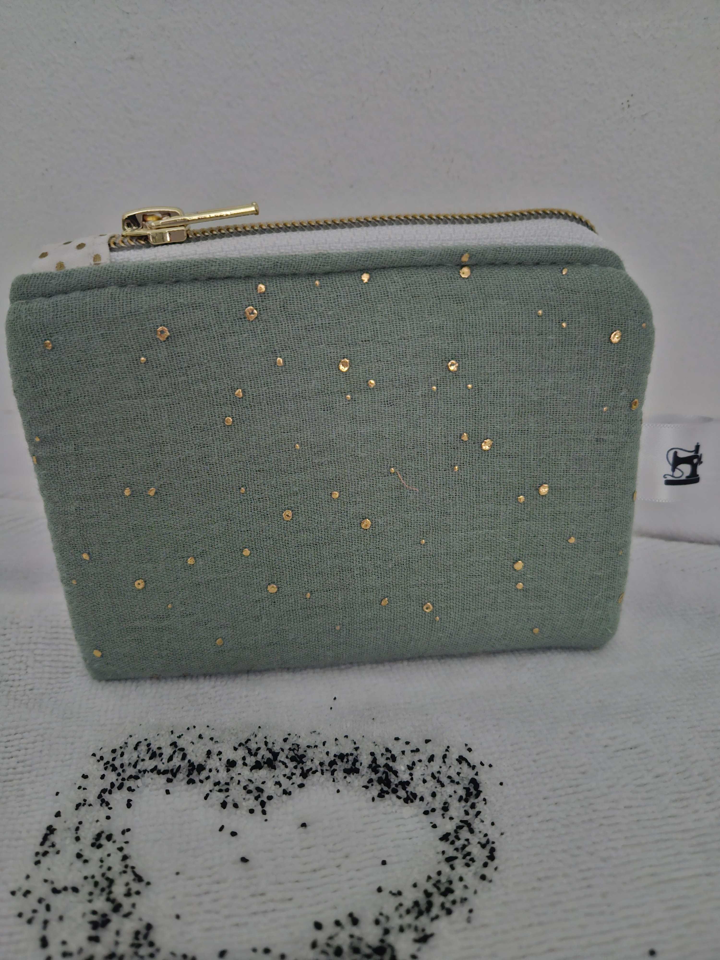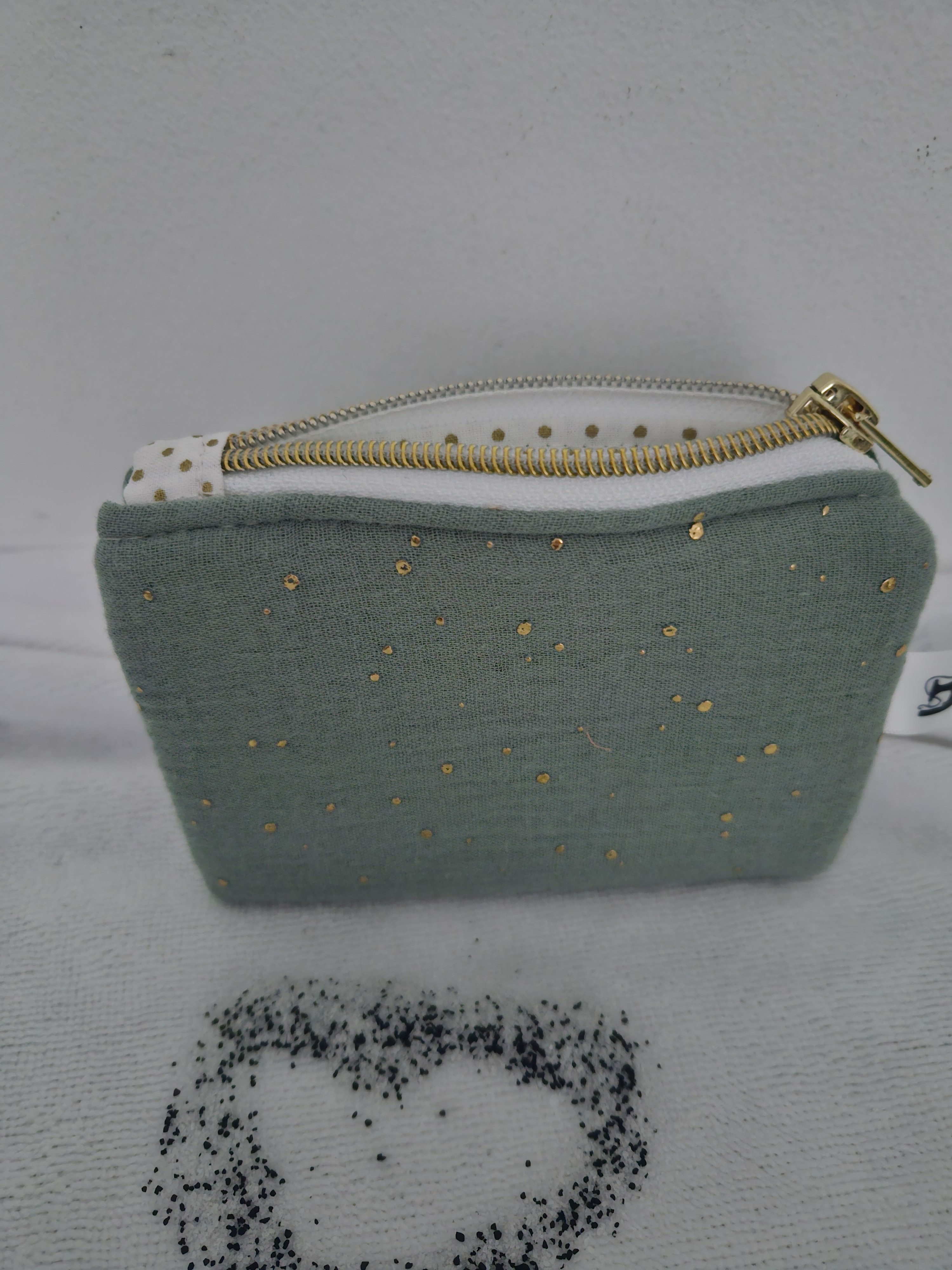 Porte monnaie réalisé en Tissus double gaze à pois dorés.