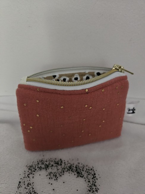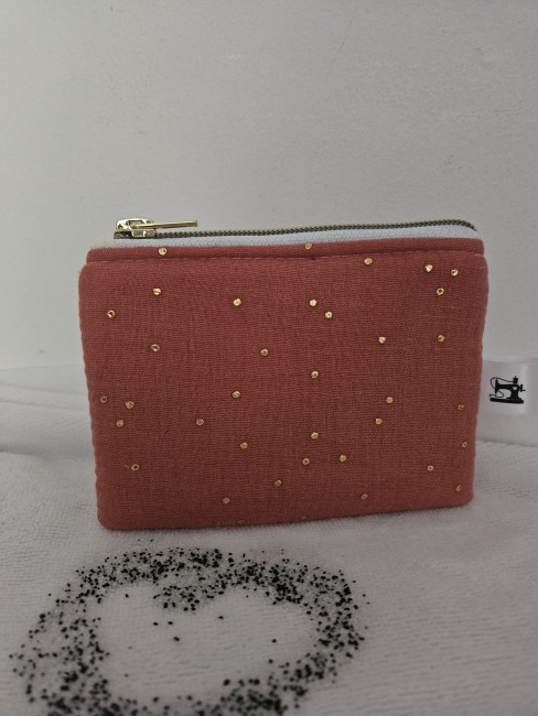 Porte monnaie réalisé en Tissus double gaze à pois dorés.