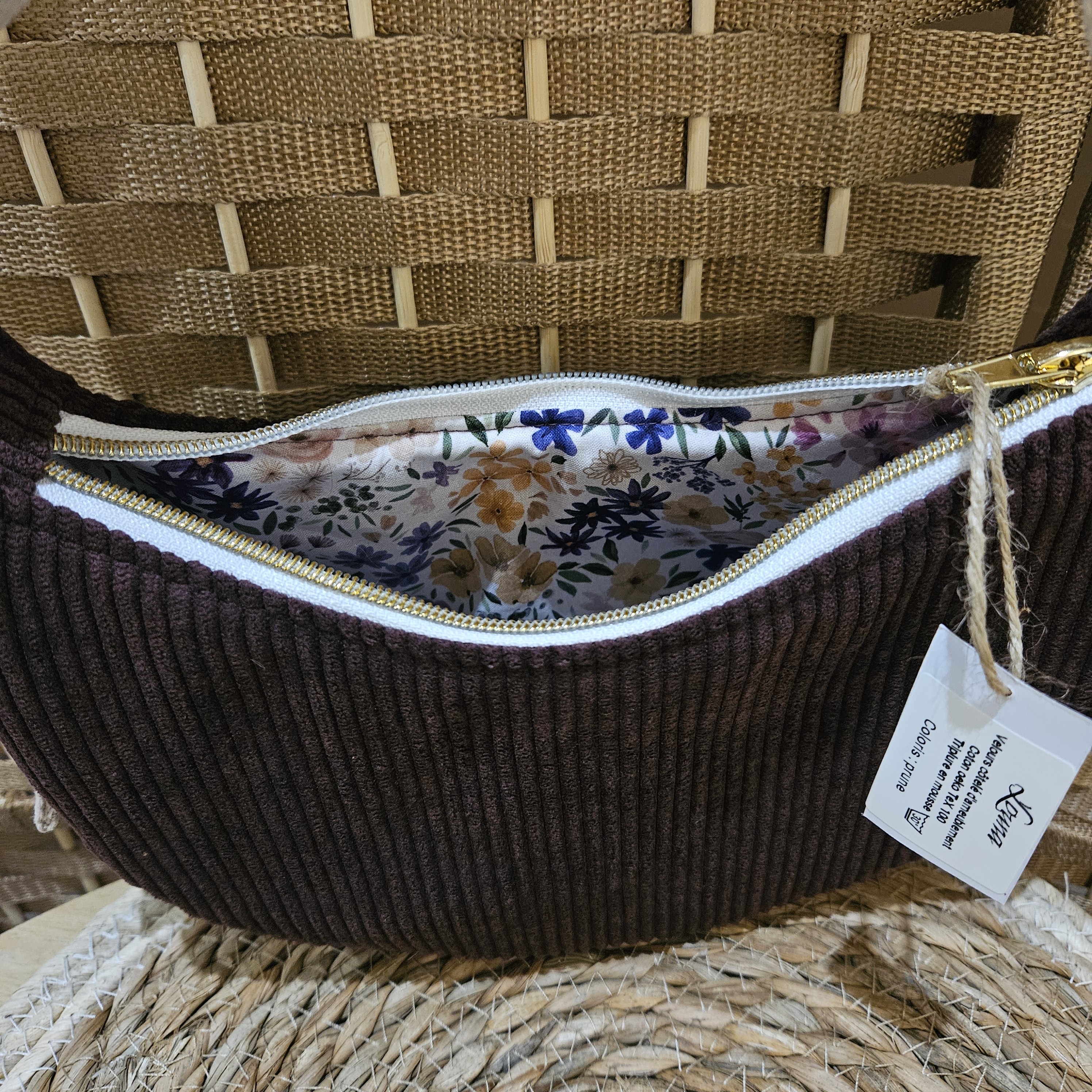 Sac à main de petite taille, réalisé en velours côtelé d'ameublement