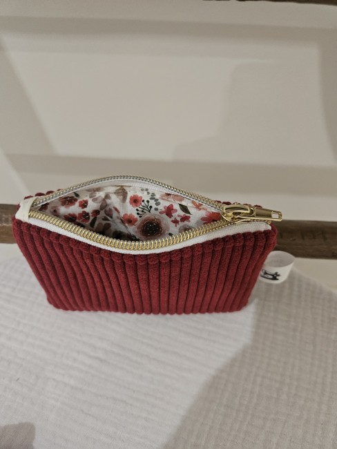 Porte monnaie réalisé en velours côtelé d’ameublement .