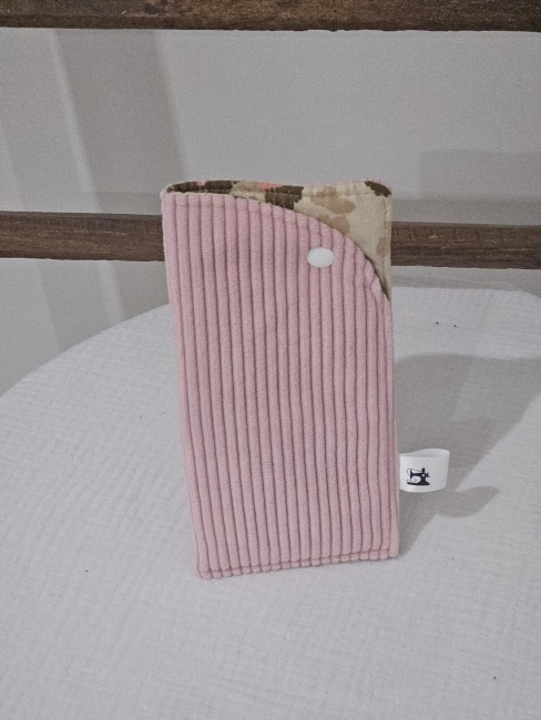 Étui à lunettes réalisé en velours côtelé d'ameublement.