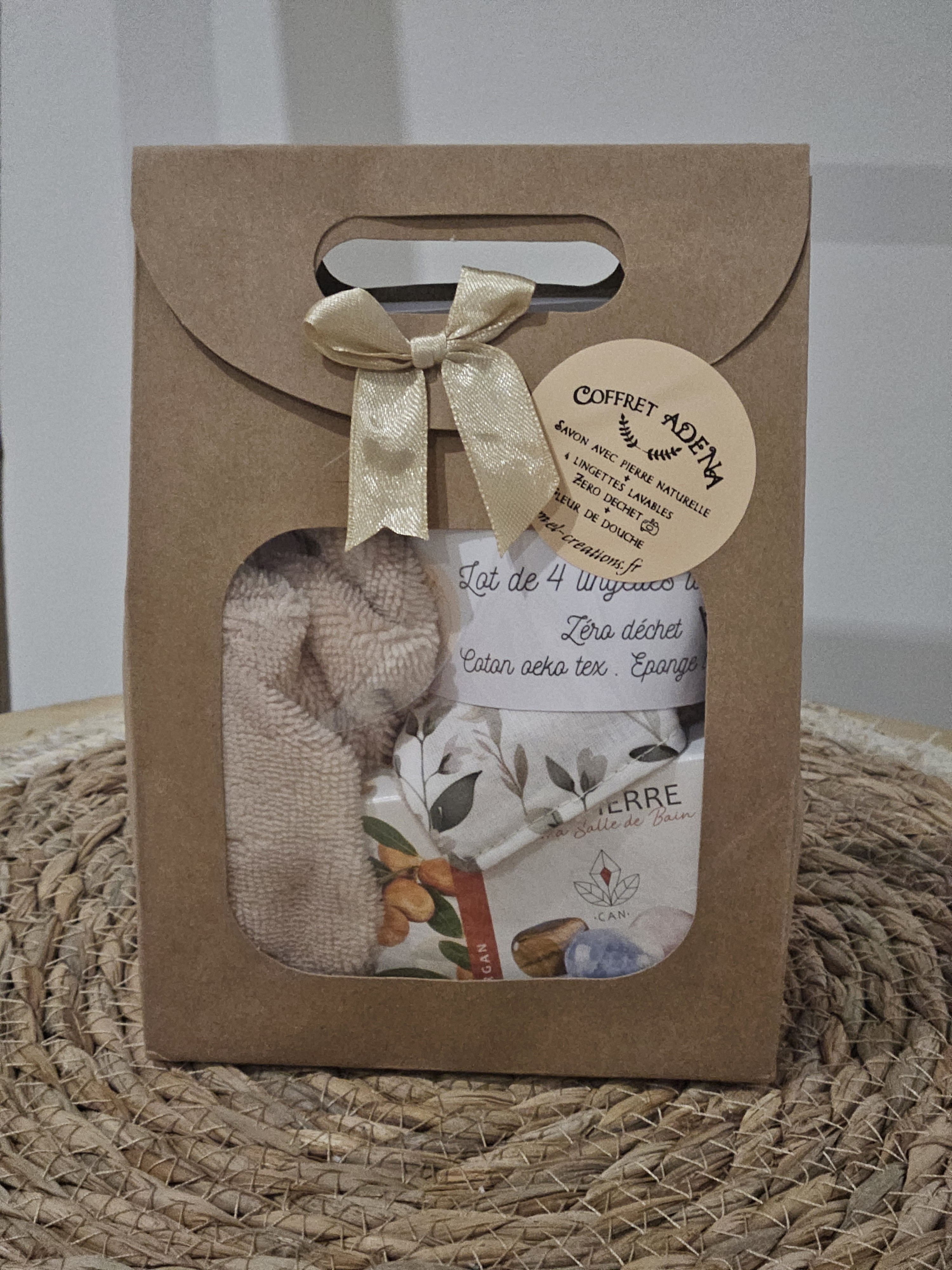 Une fleur de douche en éponge bambou assortie aux lingettes ici coloris blé