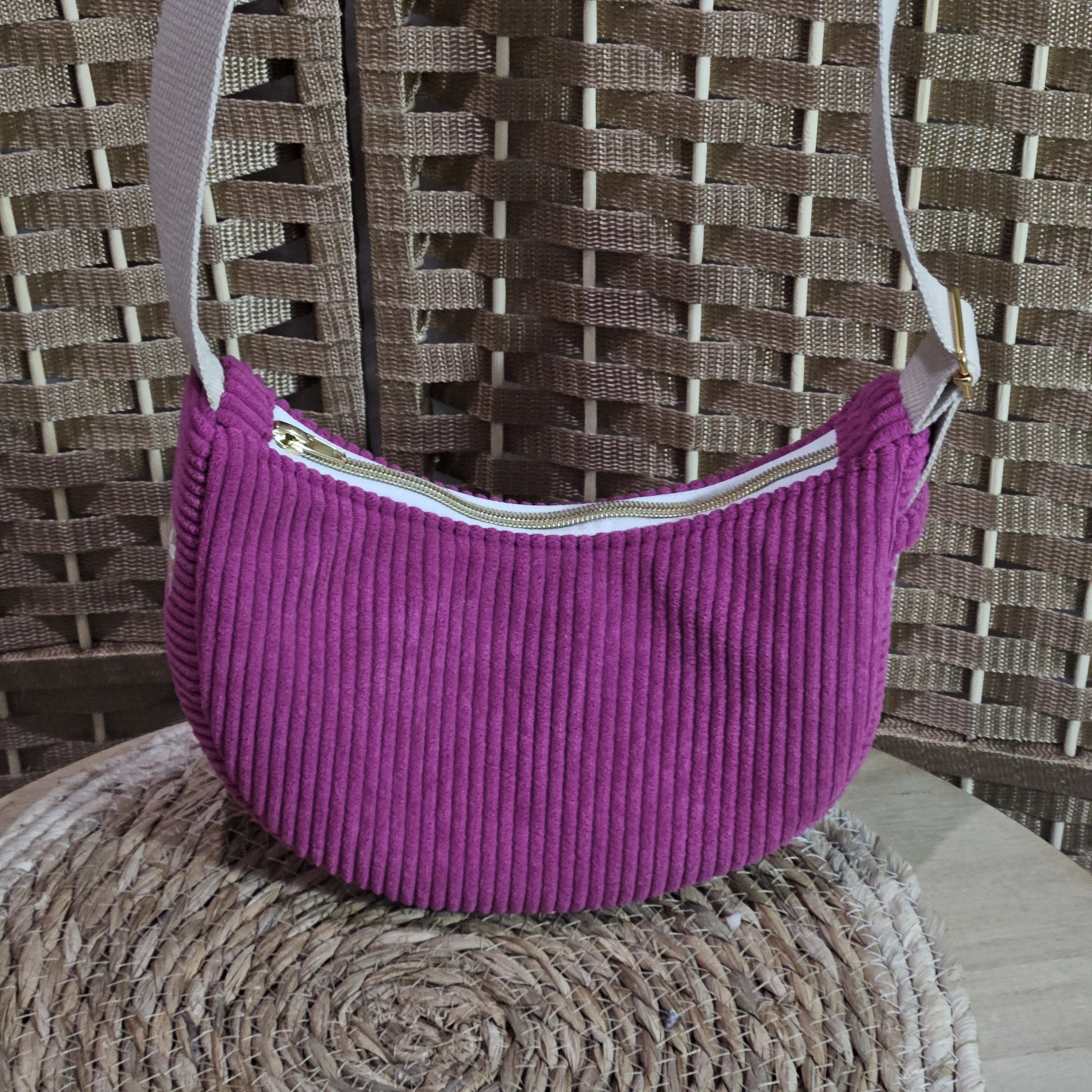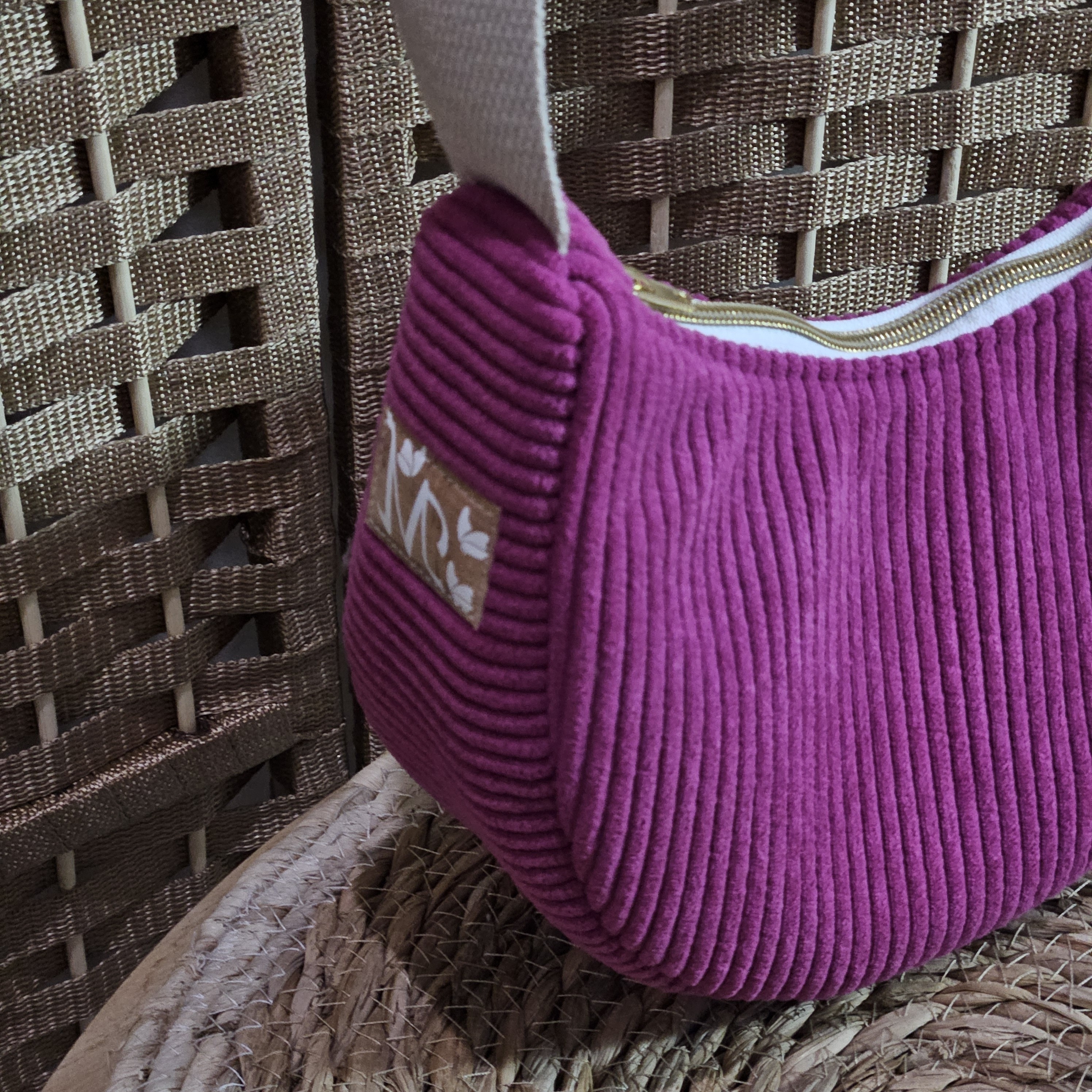 Sac à main de petite taille, réalisé en velours côtelé d'ameublement