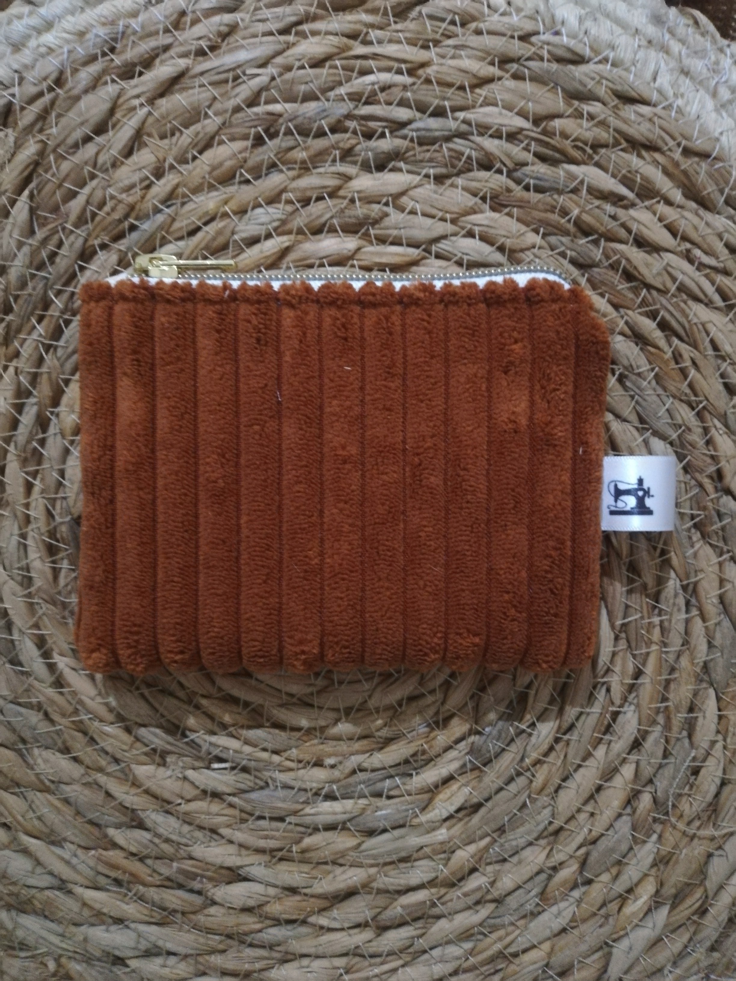 Porte monnaie réalisé en velours côtelé d’ameublement.
