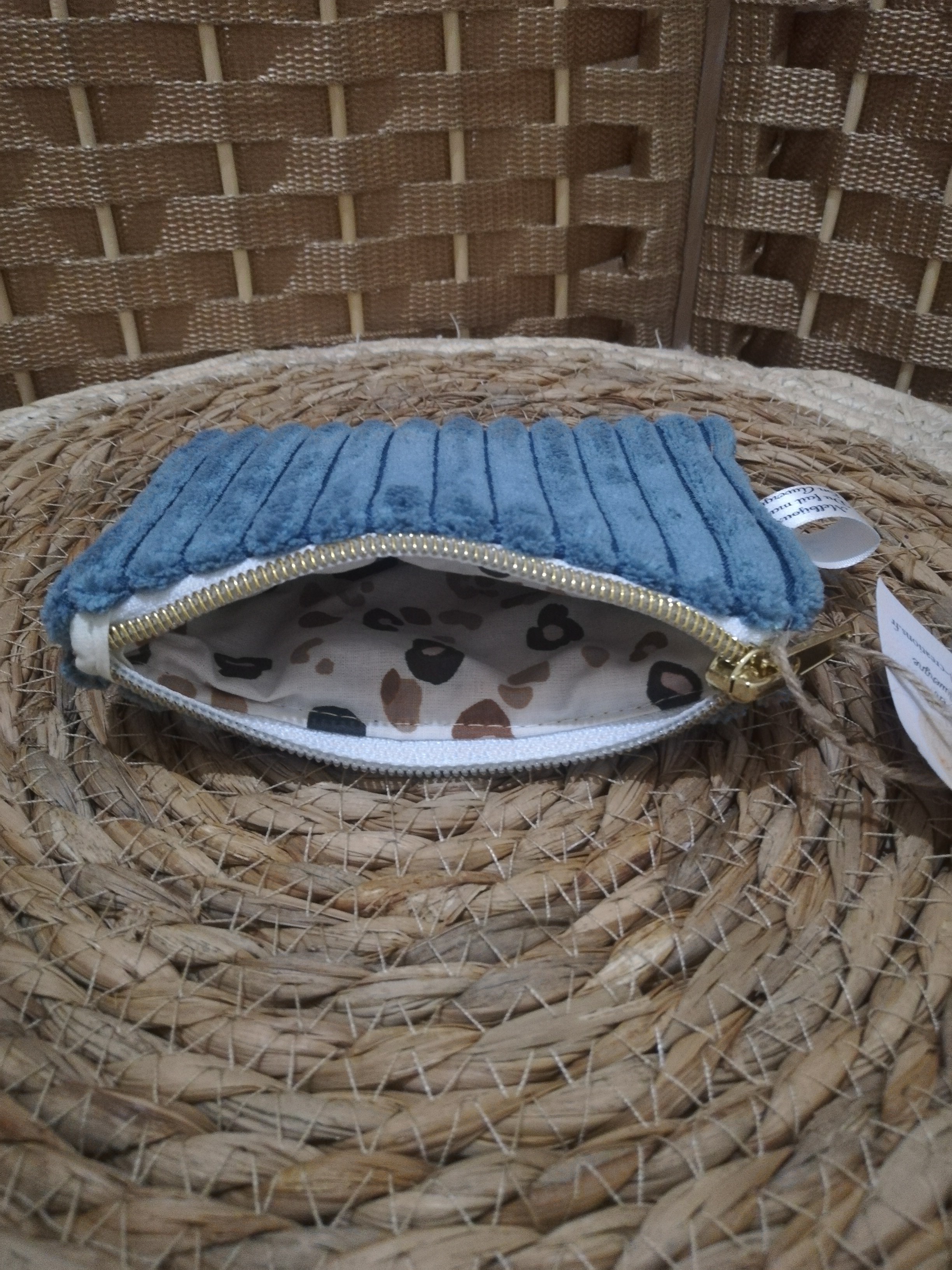Porte monnaie réalisé en velours côtelé d’ameublement.
