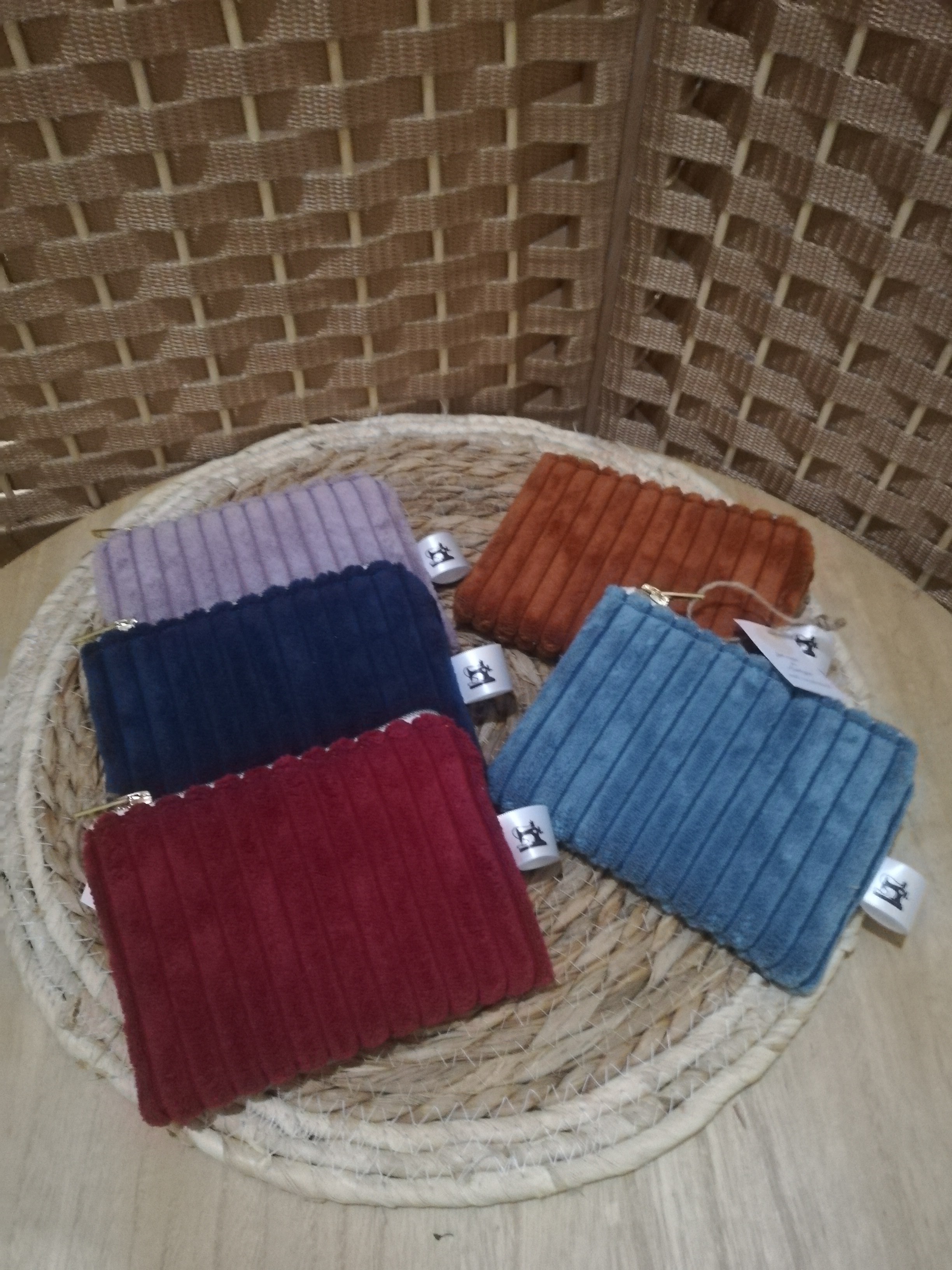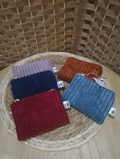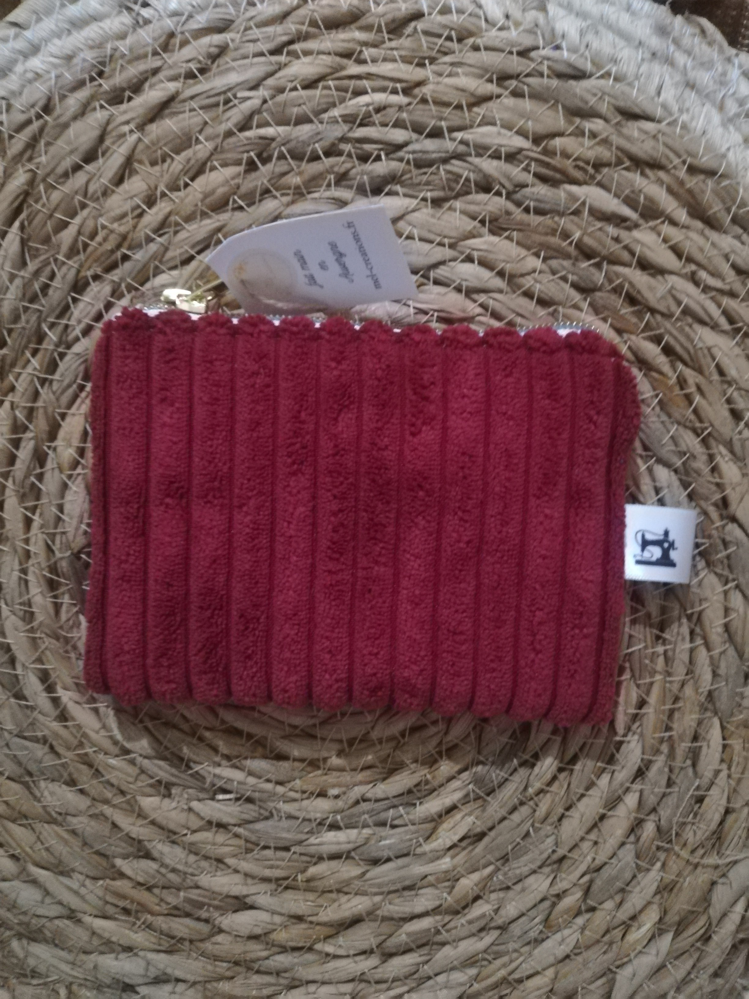 Porte monnaie réalisé en velours côtelé d’ameublement.