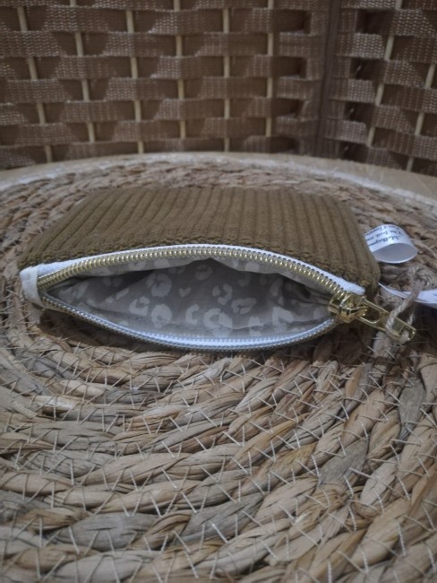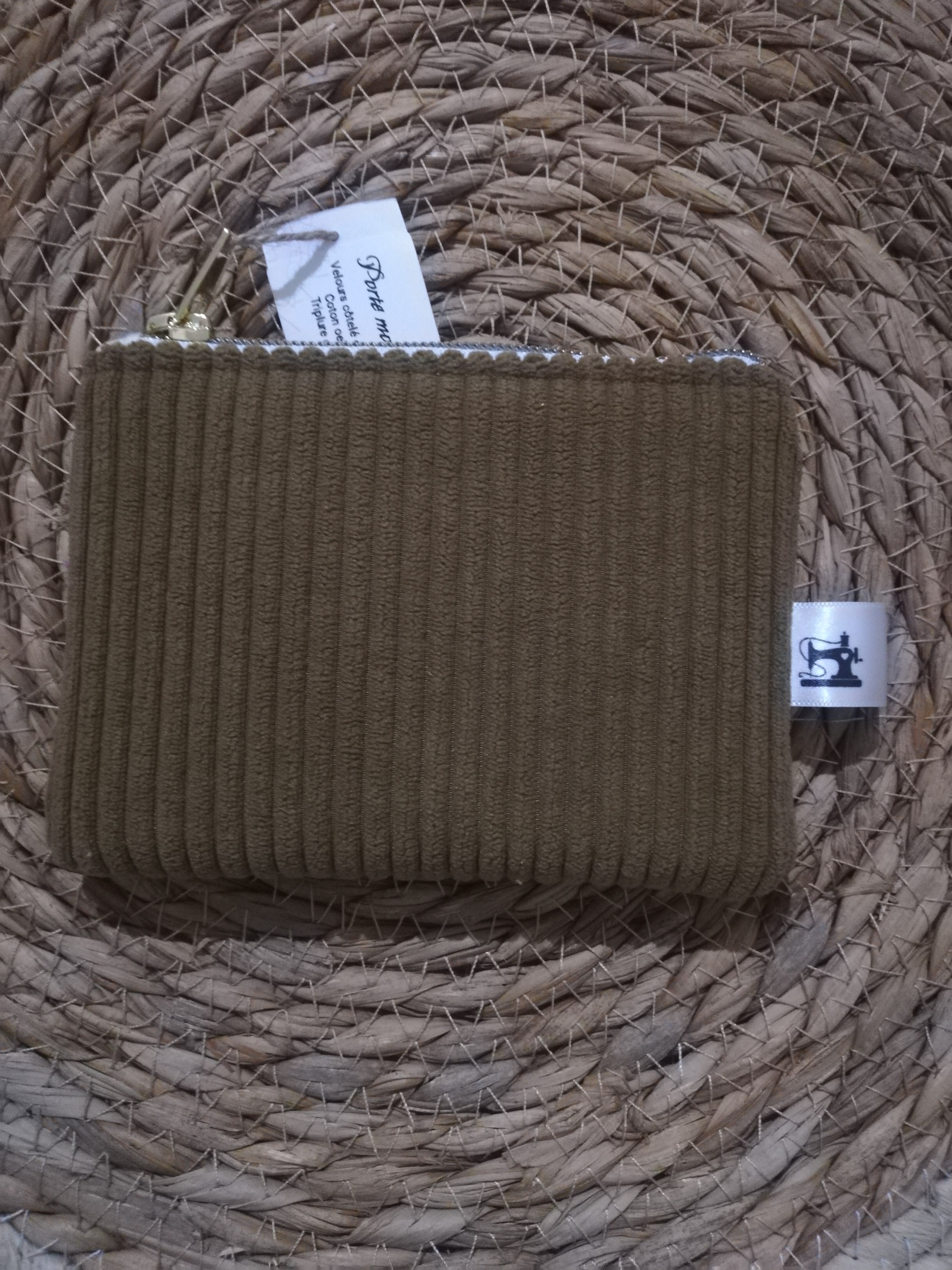 Porte monnaie réalisé en velours côtelé d’ameublement.