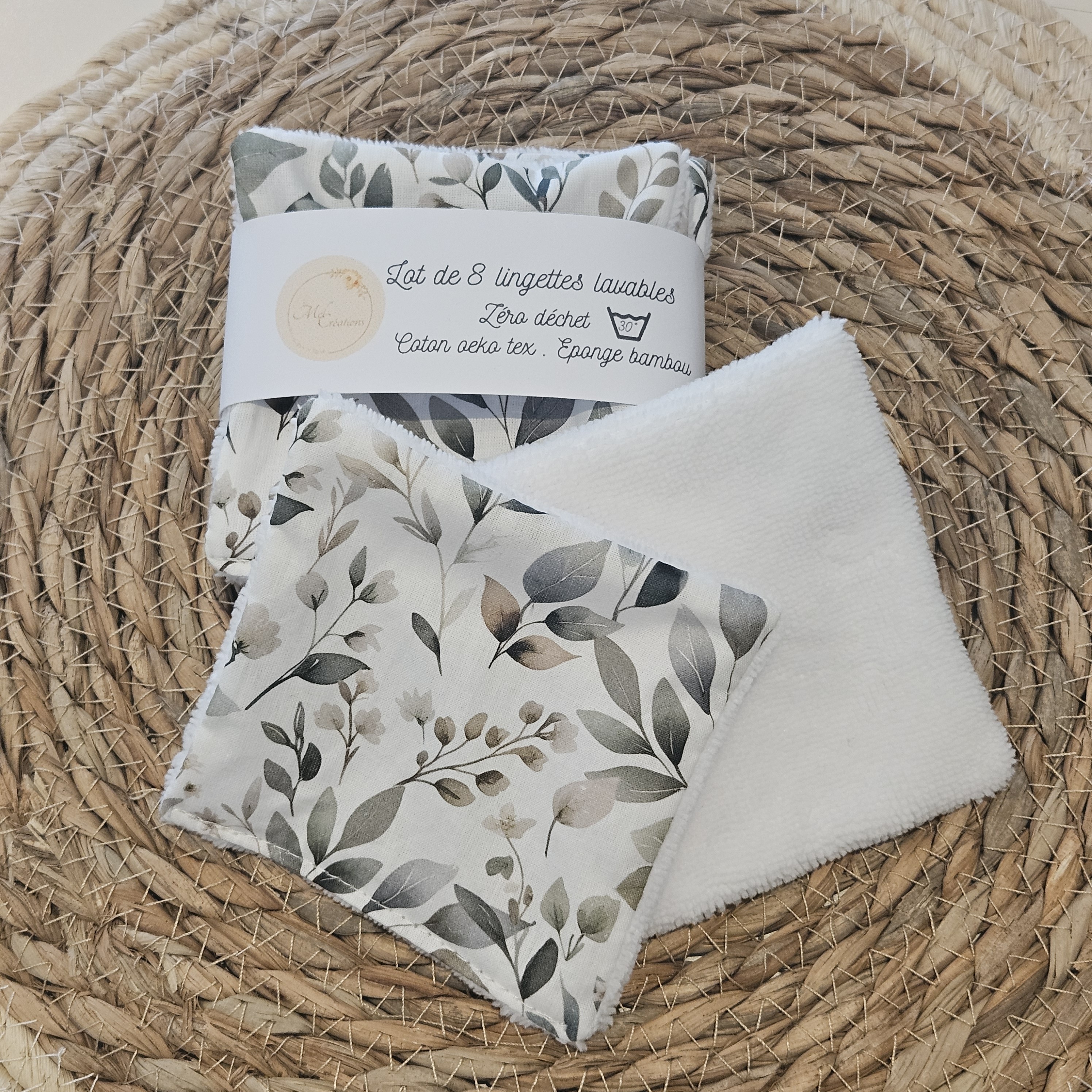 Lot de 8 lingettes lavables zéro déchet .