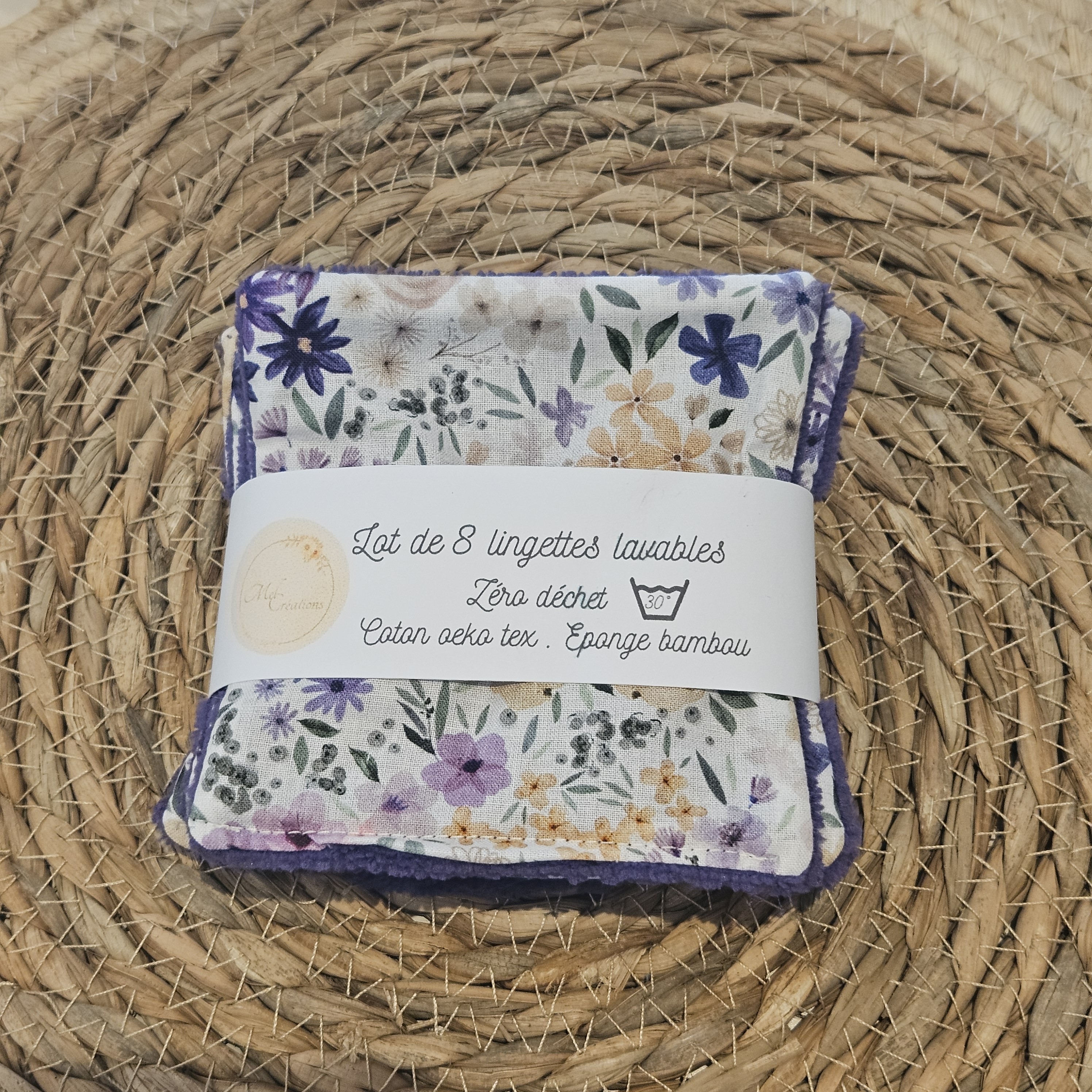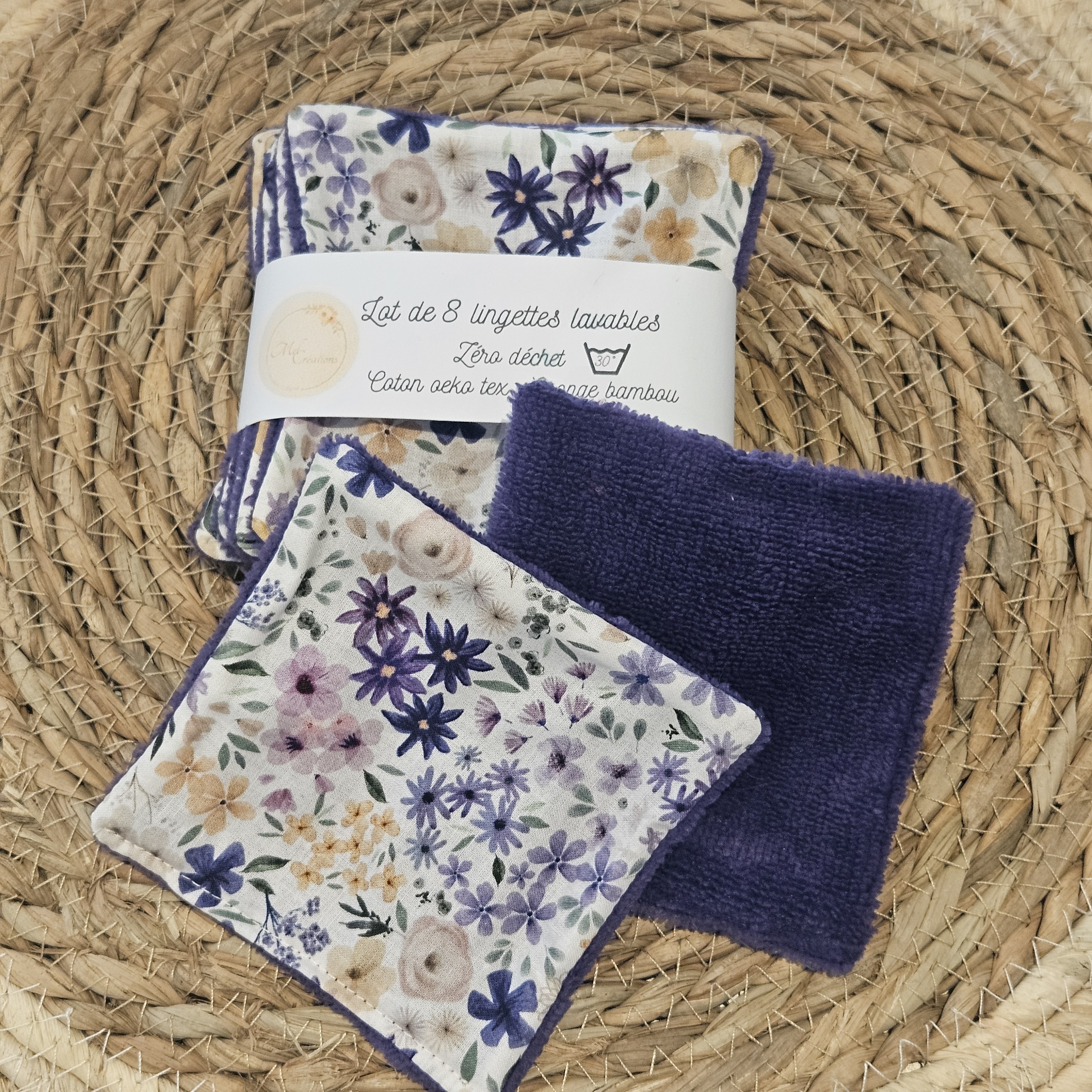 Lot de 8 lingettes zéro déchet modèle Romane violet