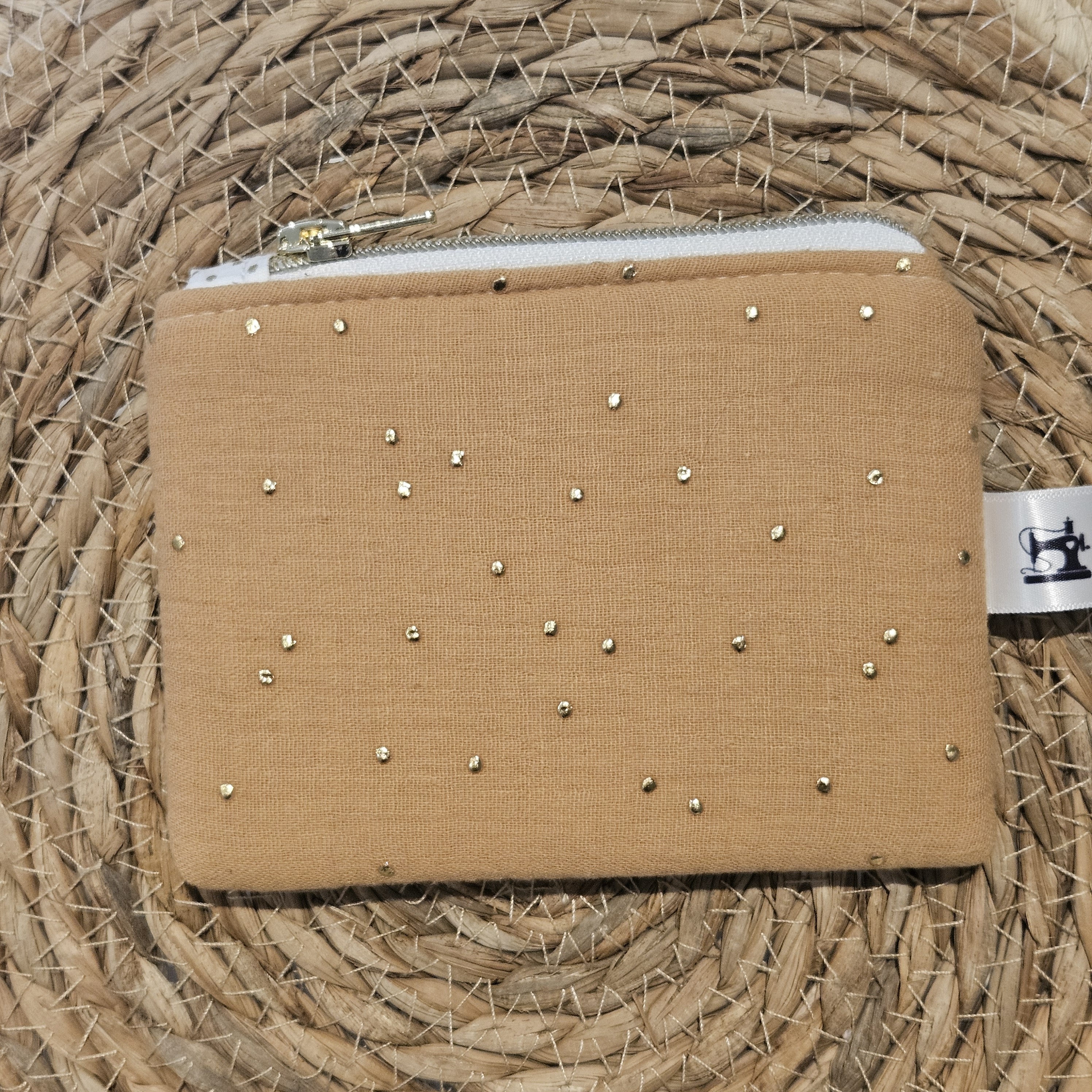 Porte monnaie coloris camel pailleté