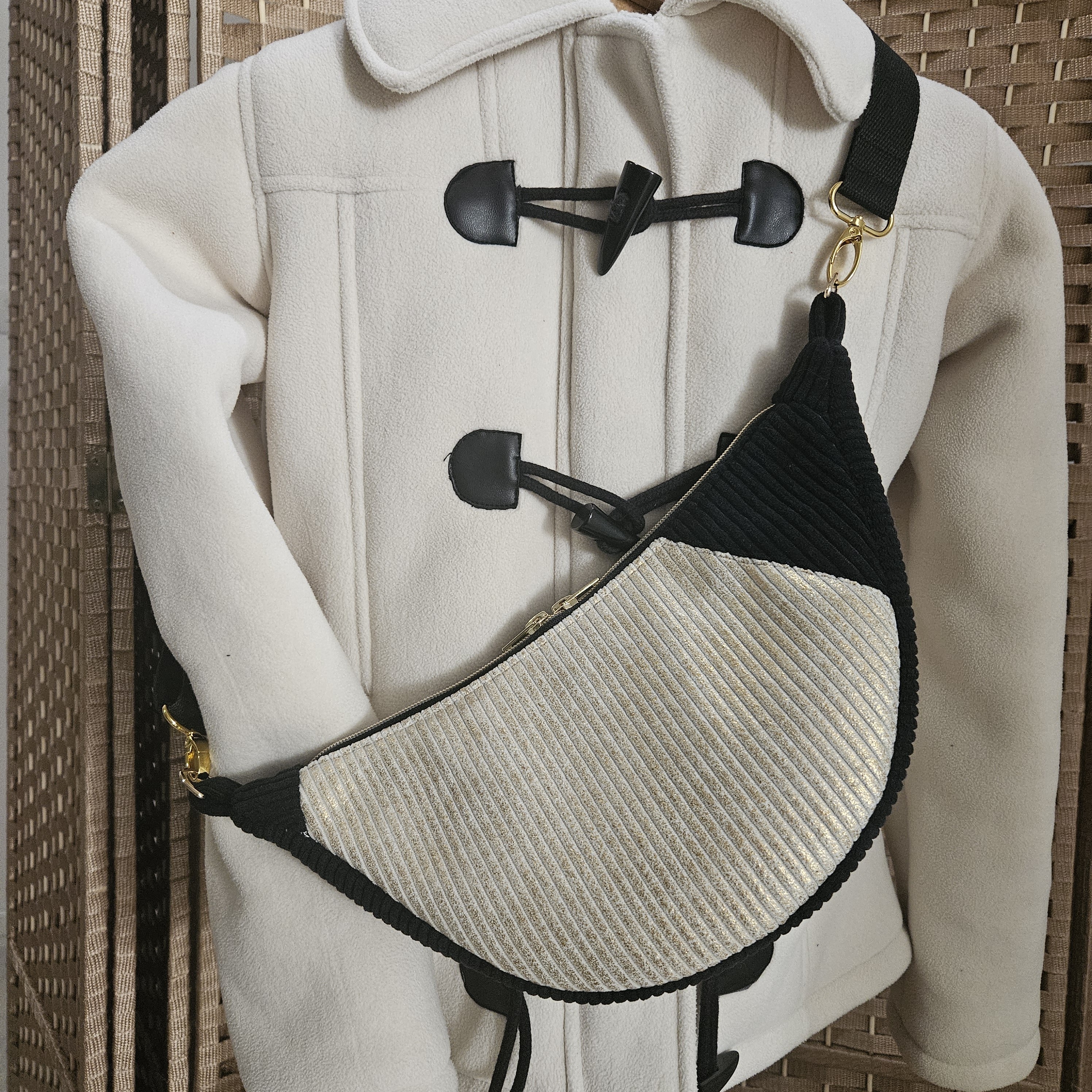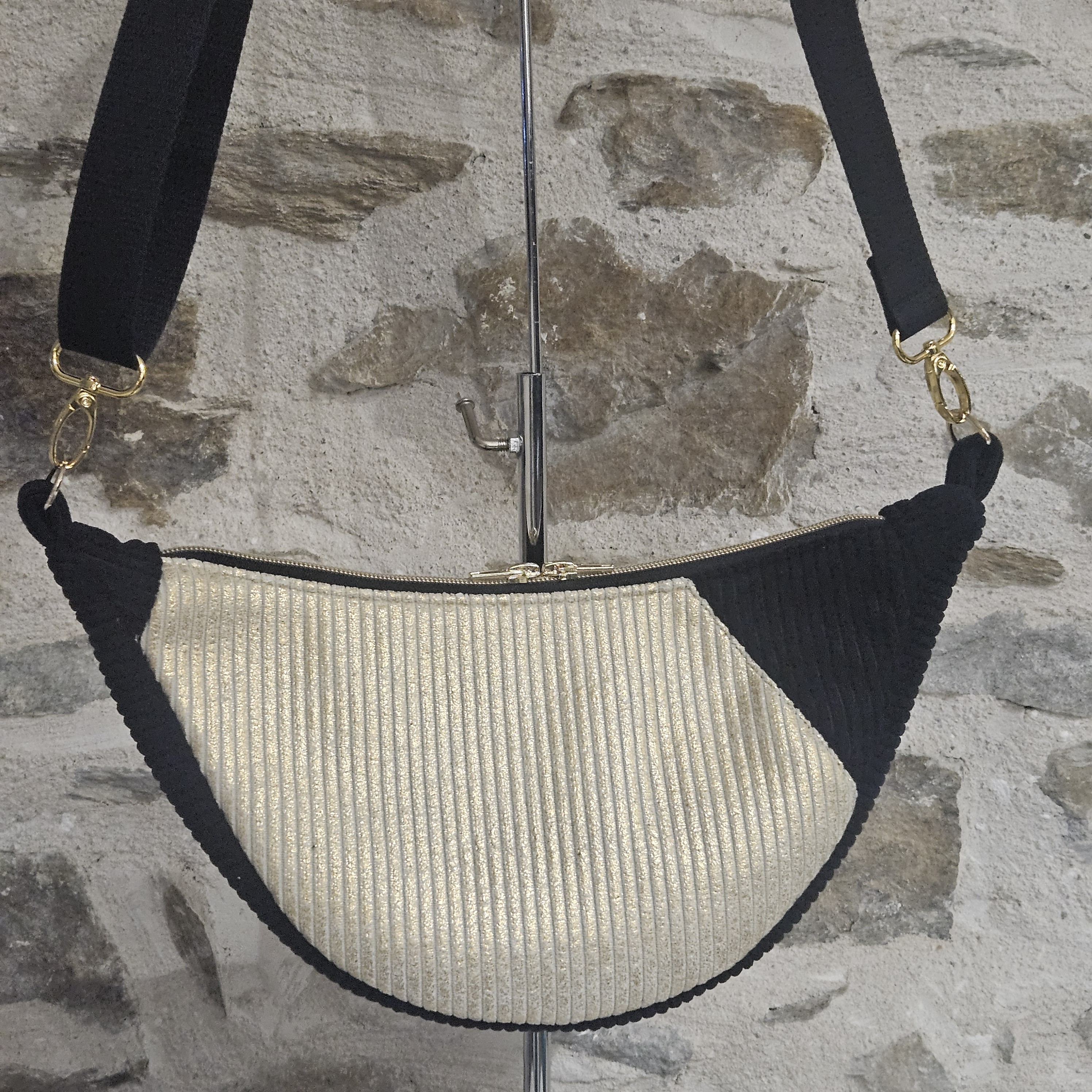 Hoshi recto et verso inversés en noir et beige lurex doré