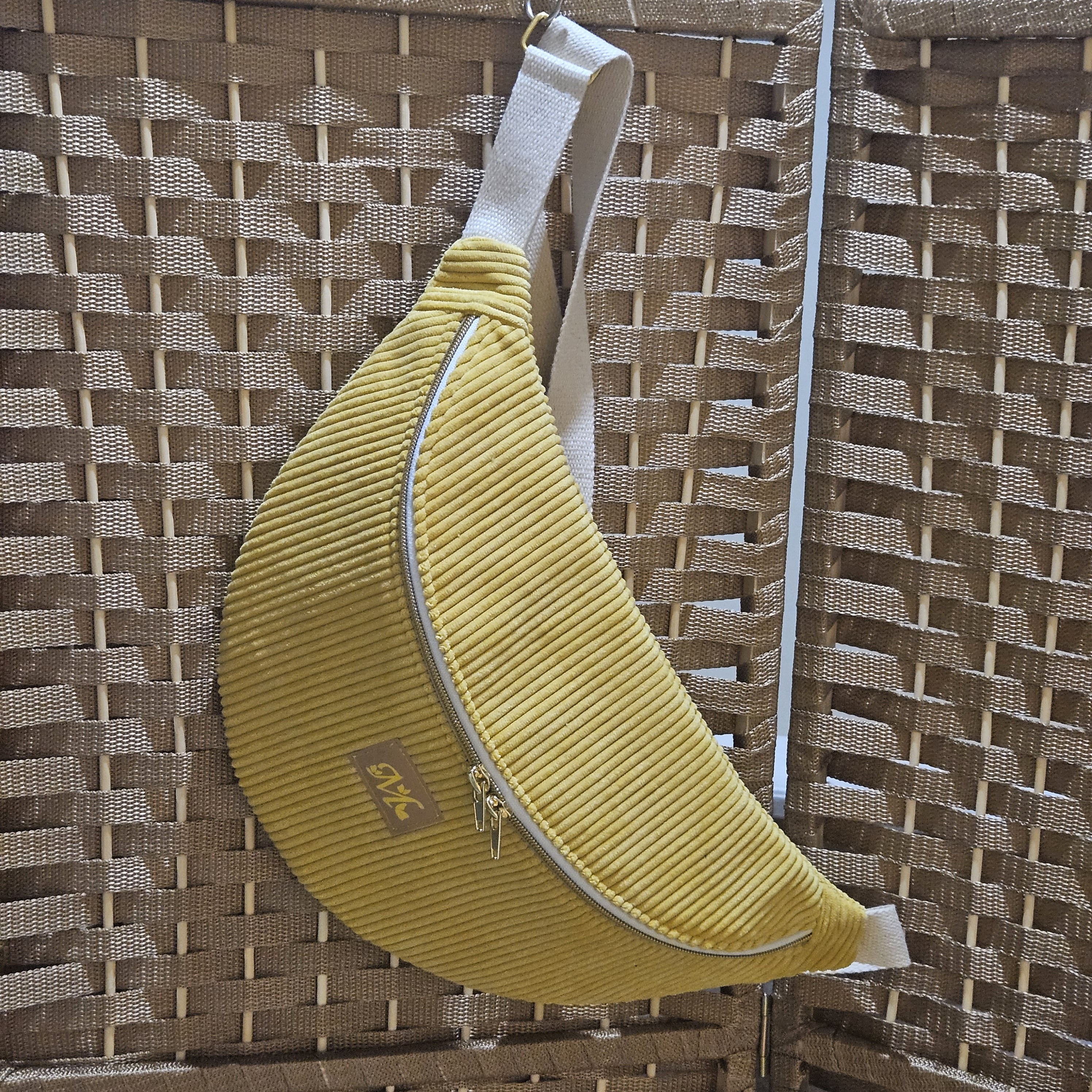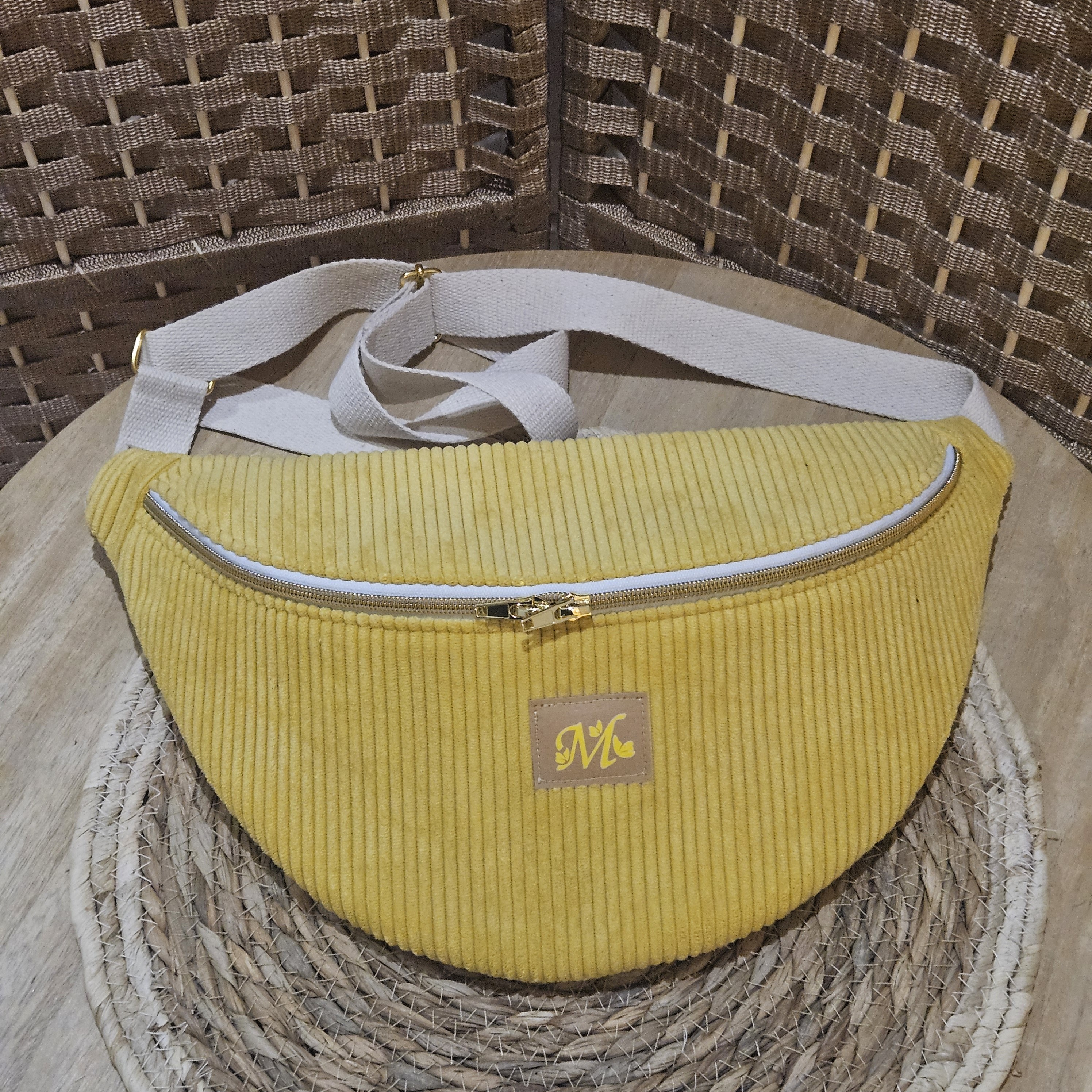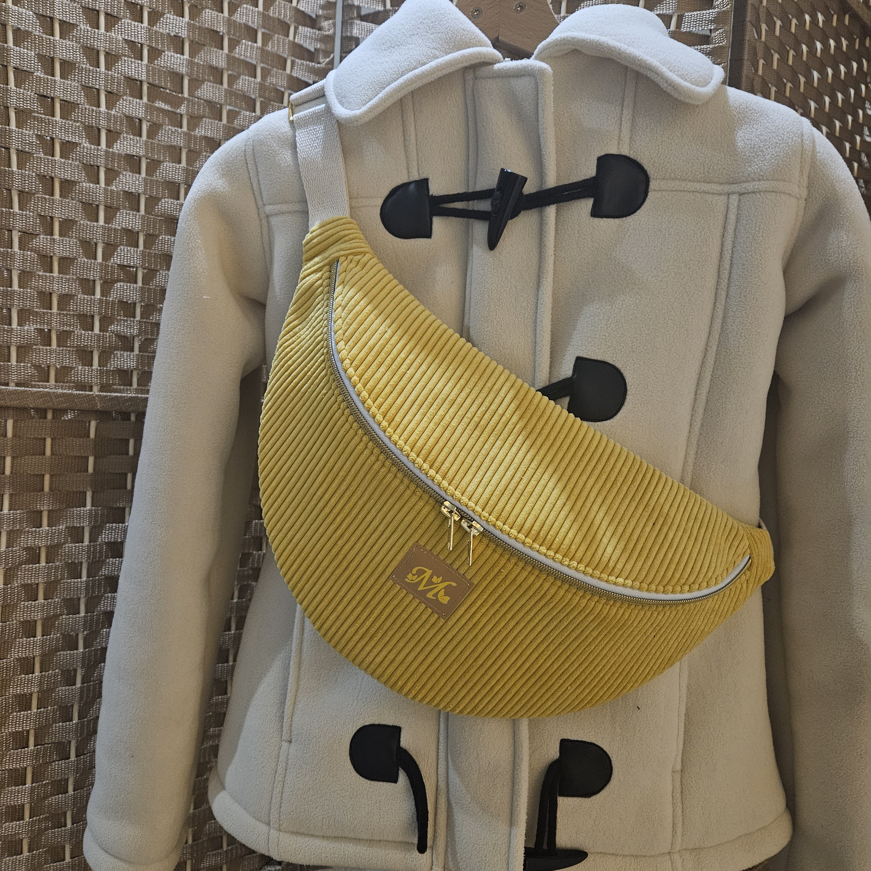 Mon sac banane réalisé en velours côtelé d'ameublement.