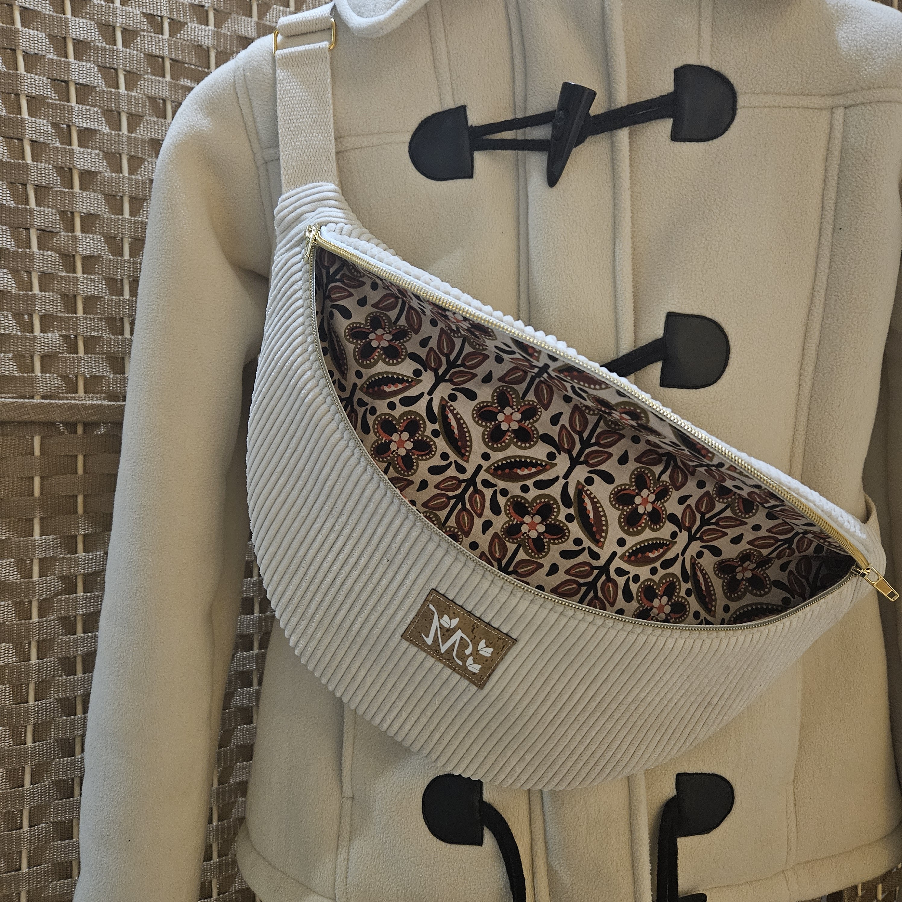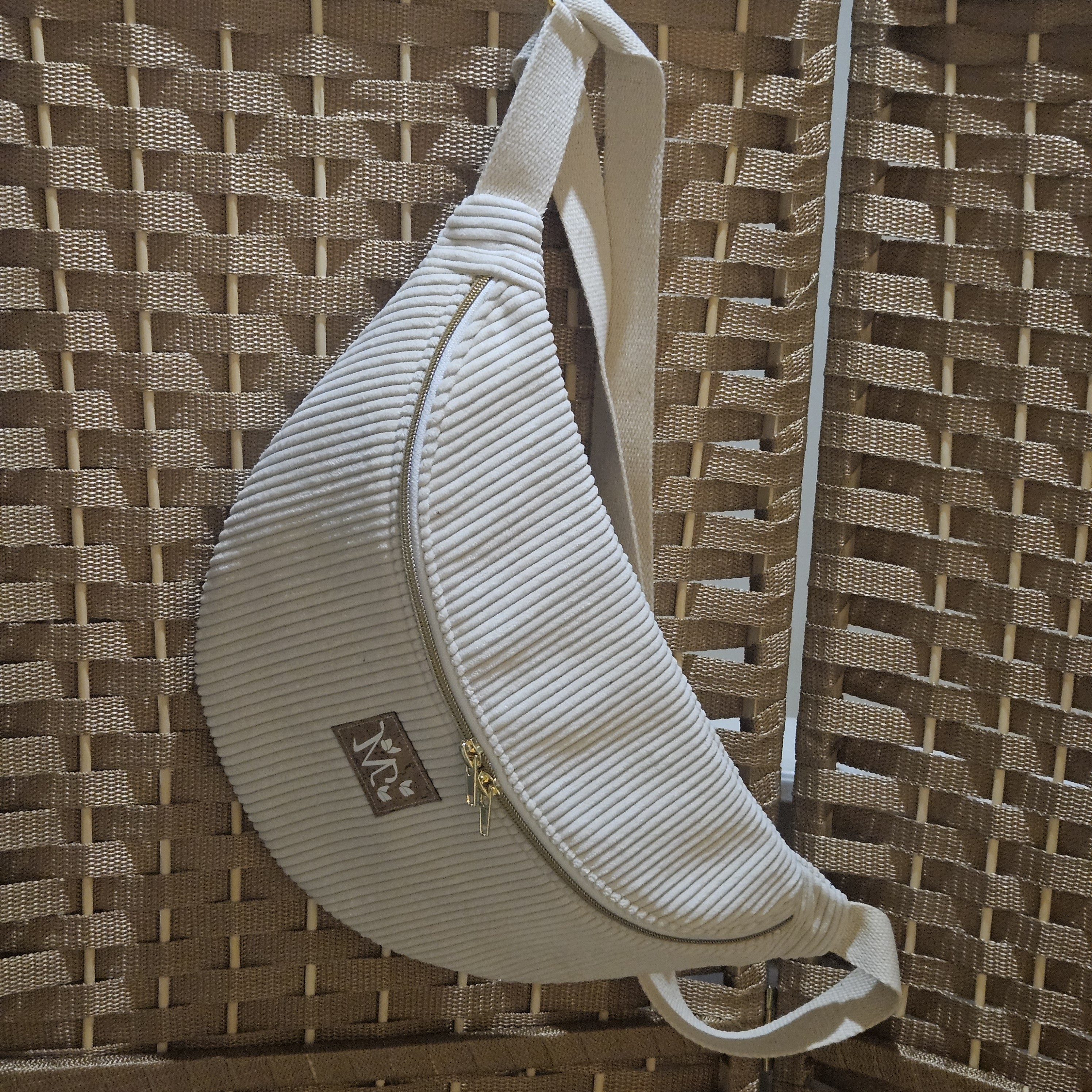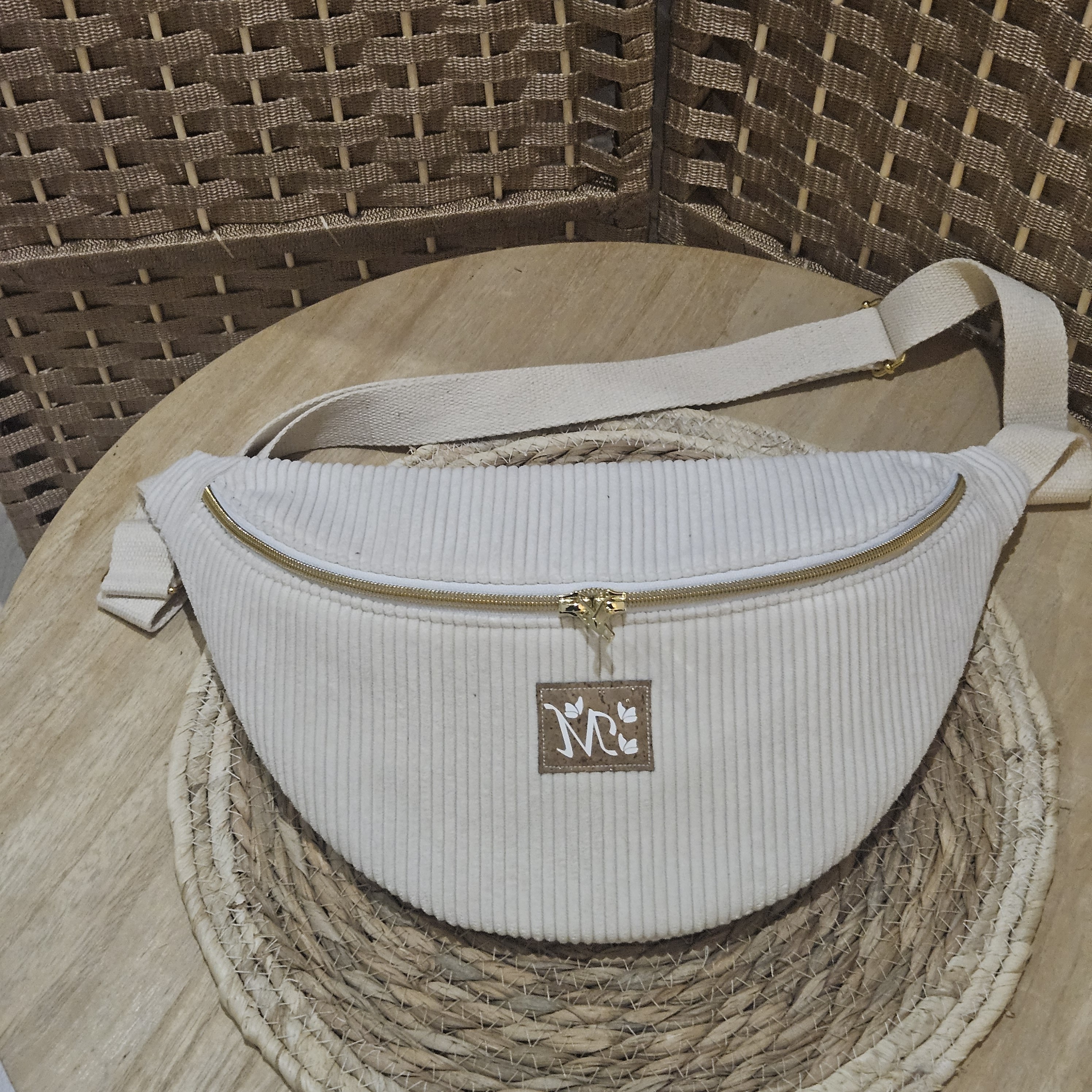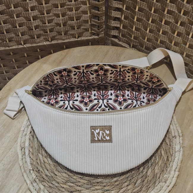 Mon sac banane réalisé en velours côtelé d'ameublement.