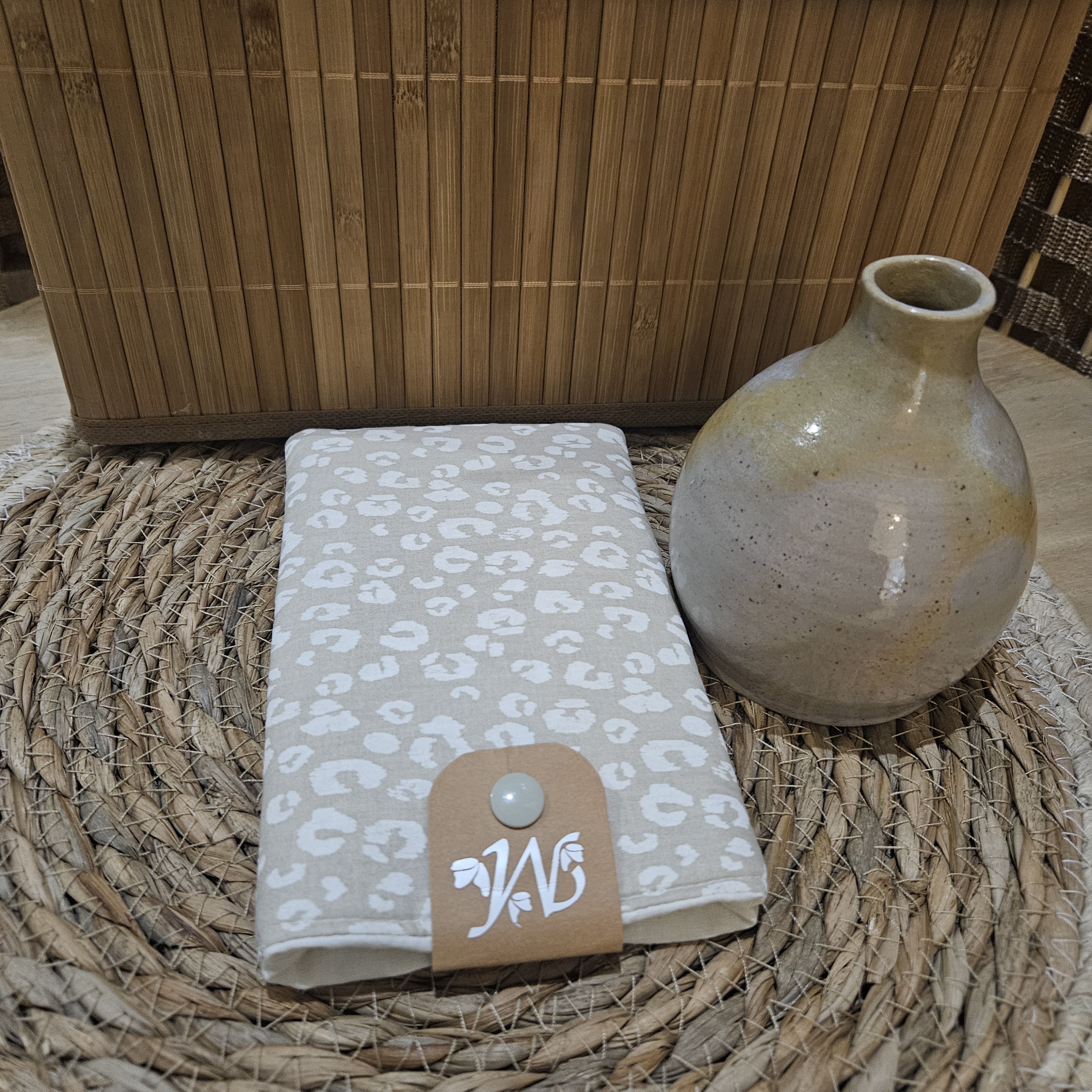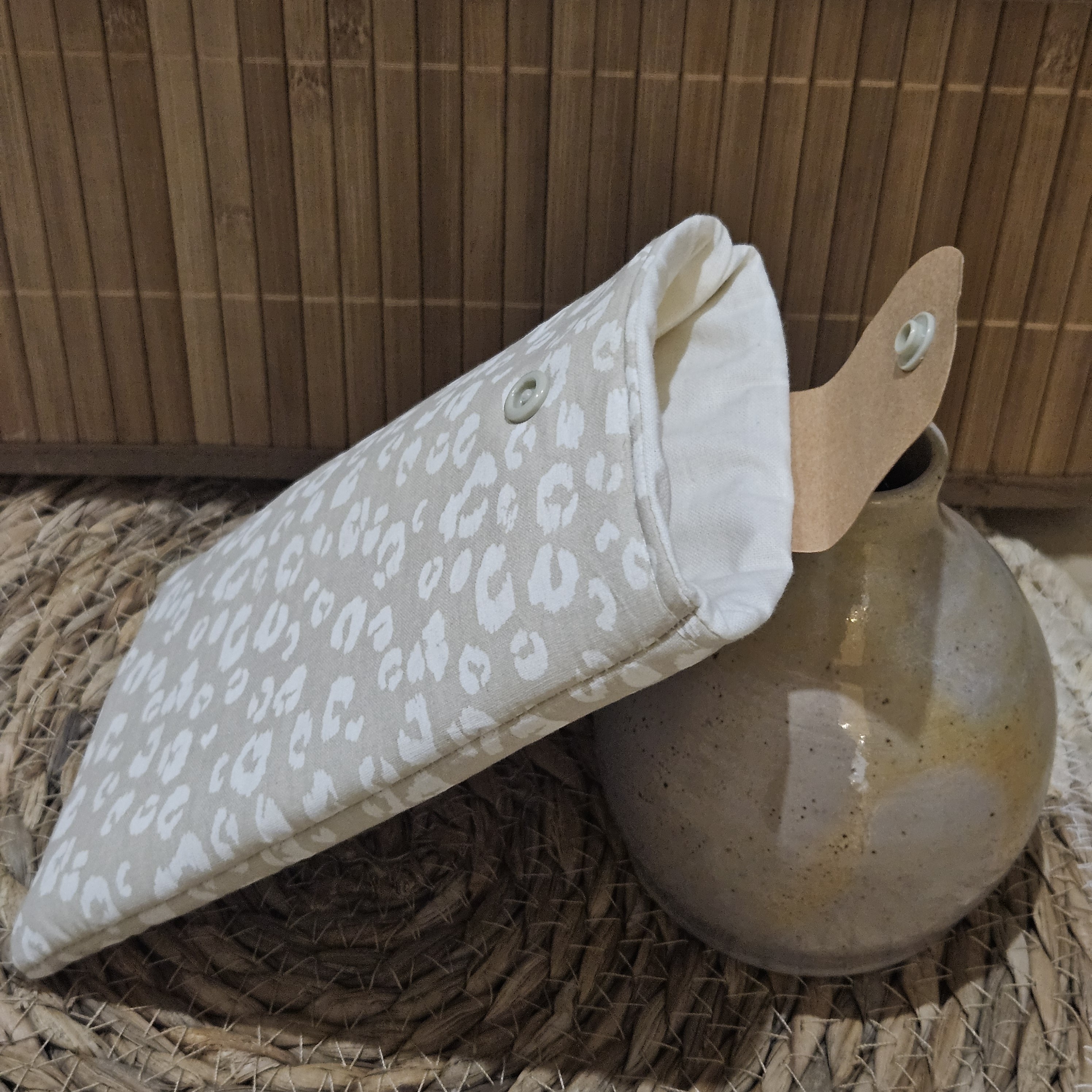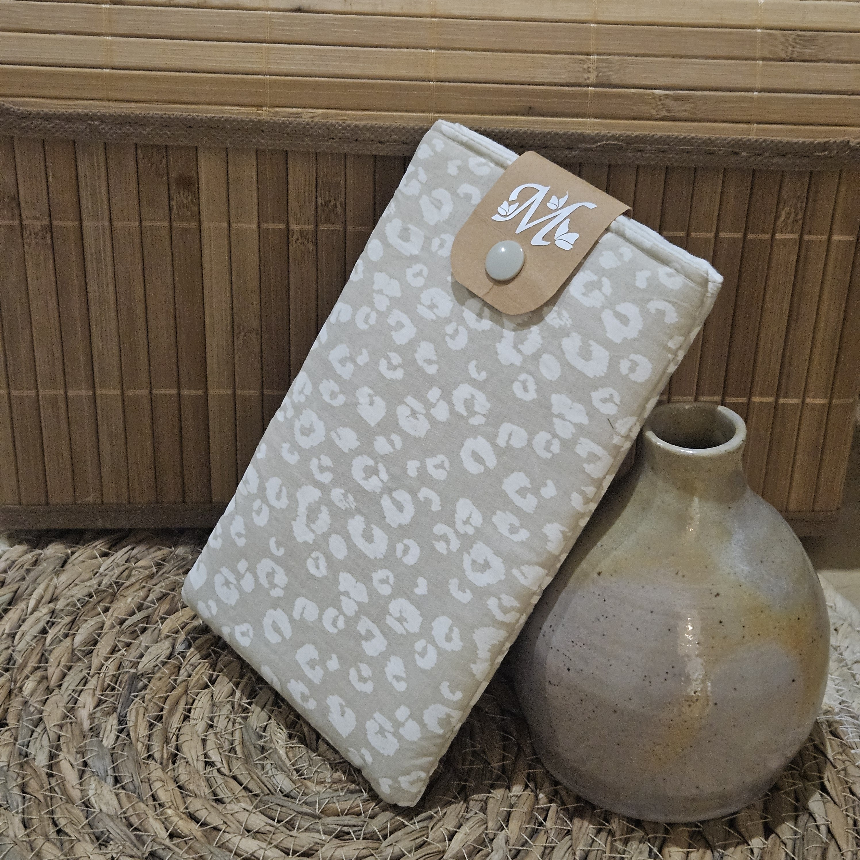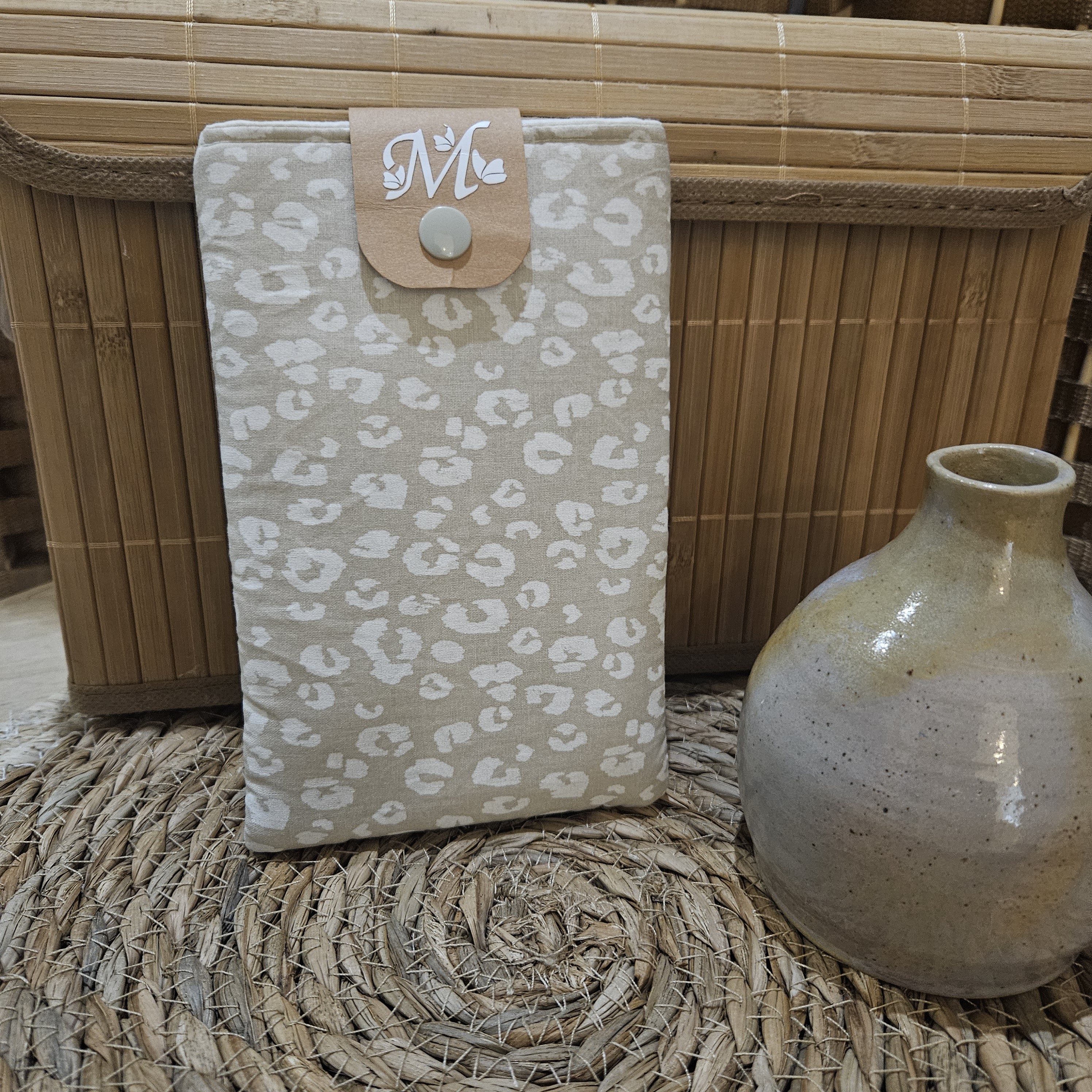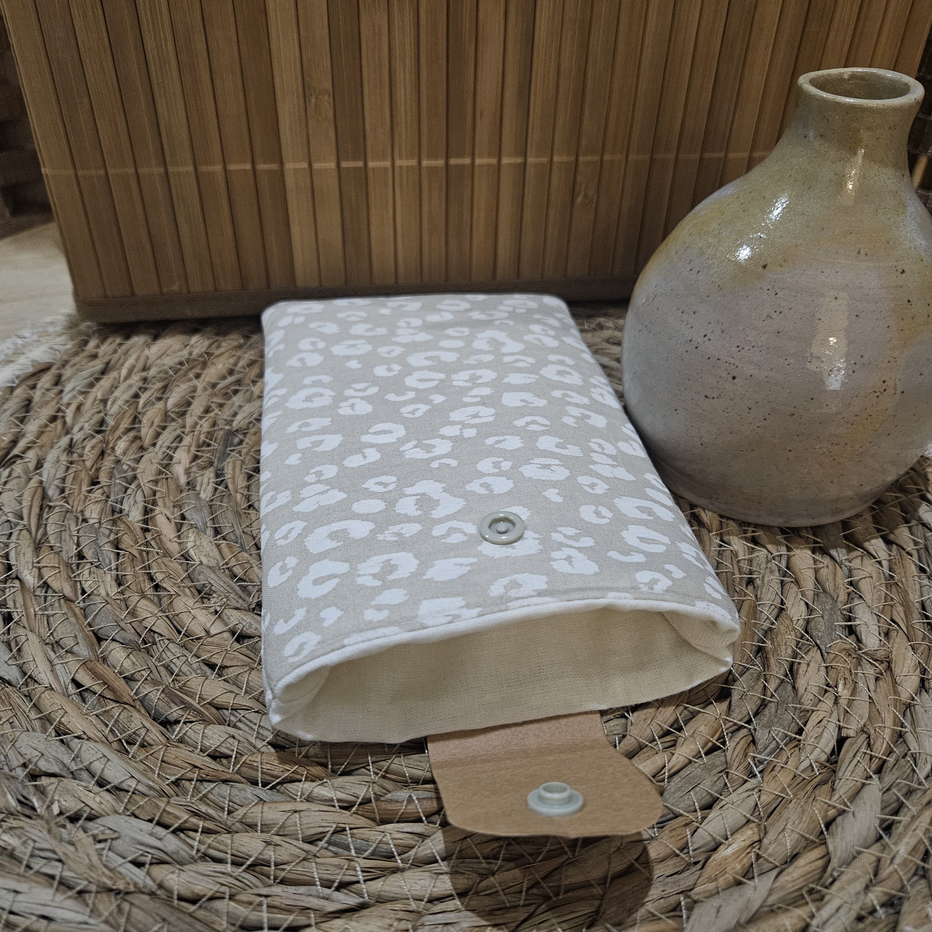 Pochette portable motif leopard ecru beige
