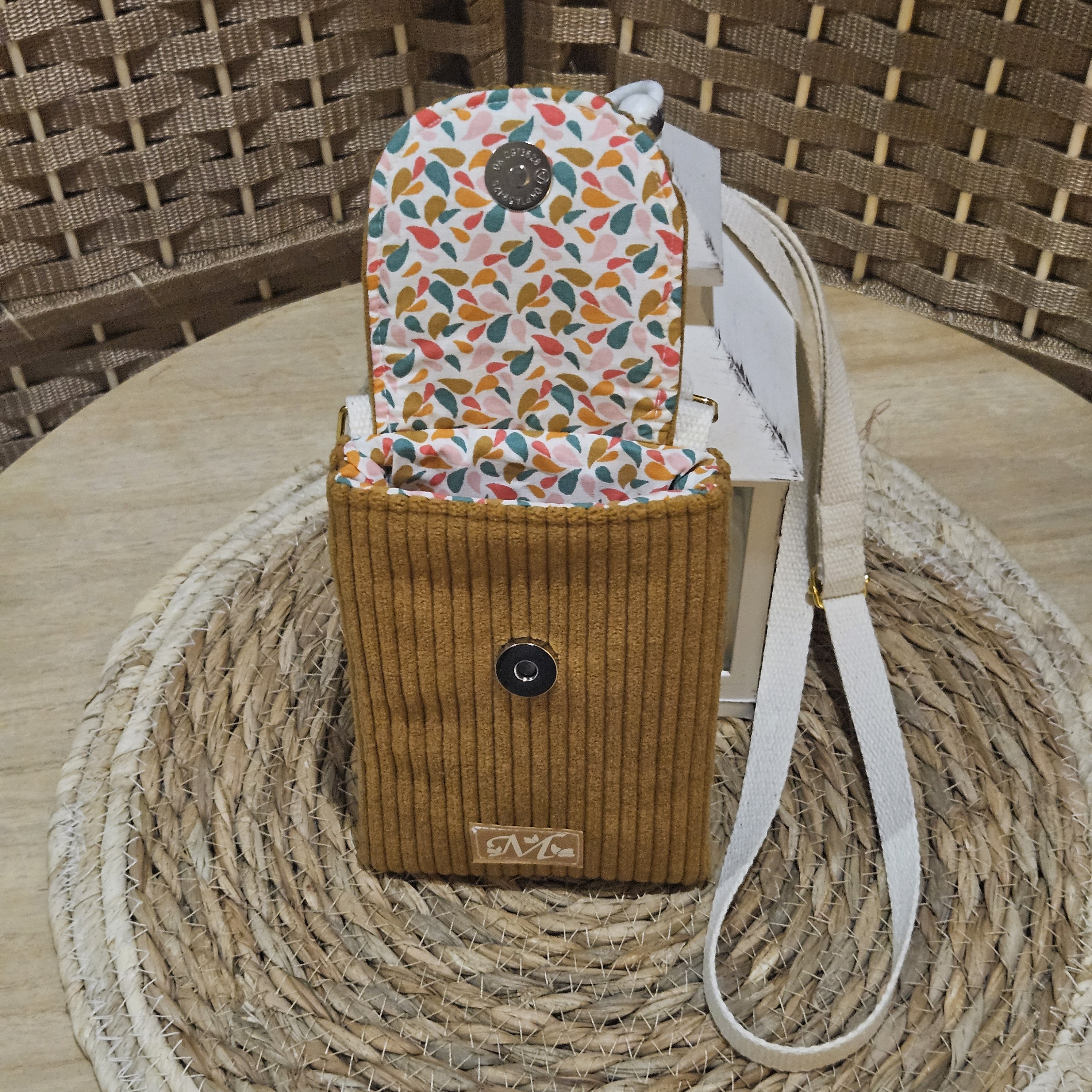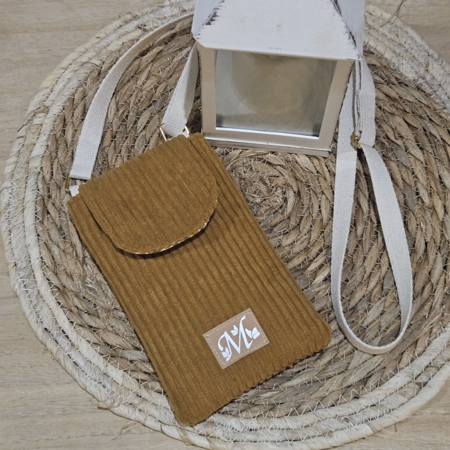 Pochette pour téléphone portable Agnès velours côtelé ocre modèle otma