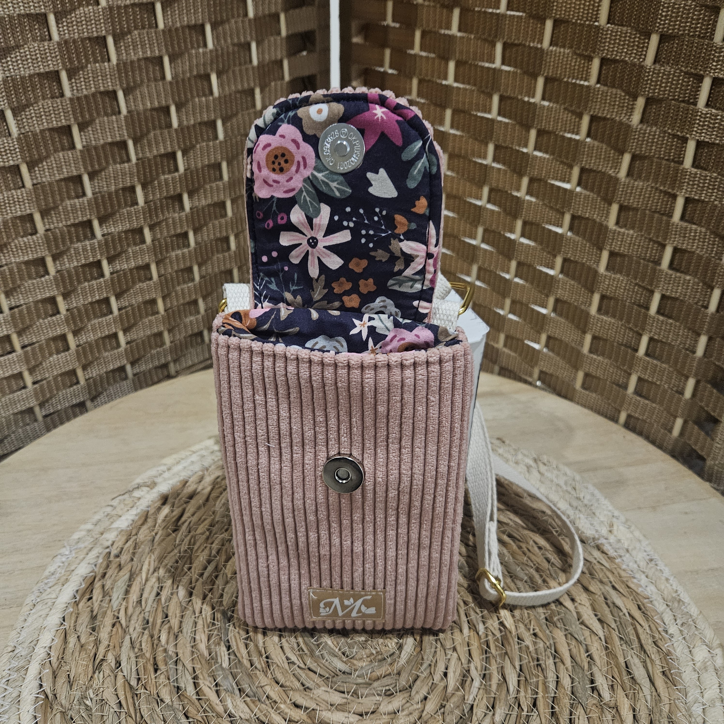 Elle est doublée en tissus coton imprimé.