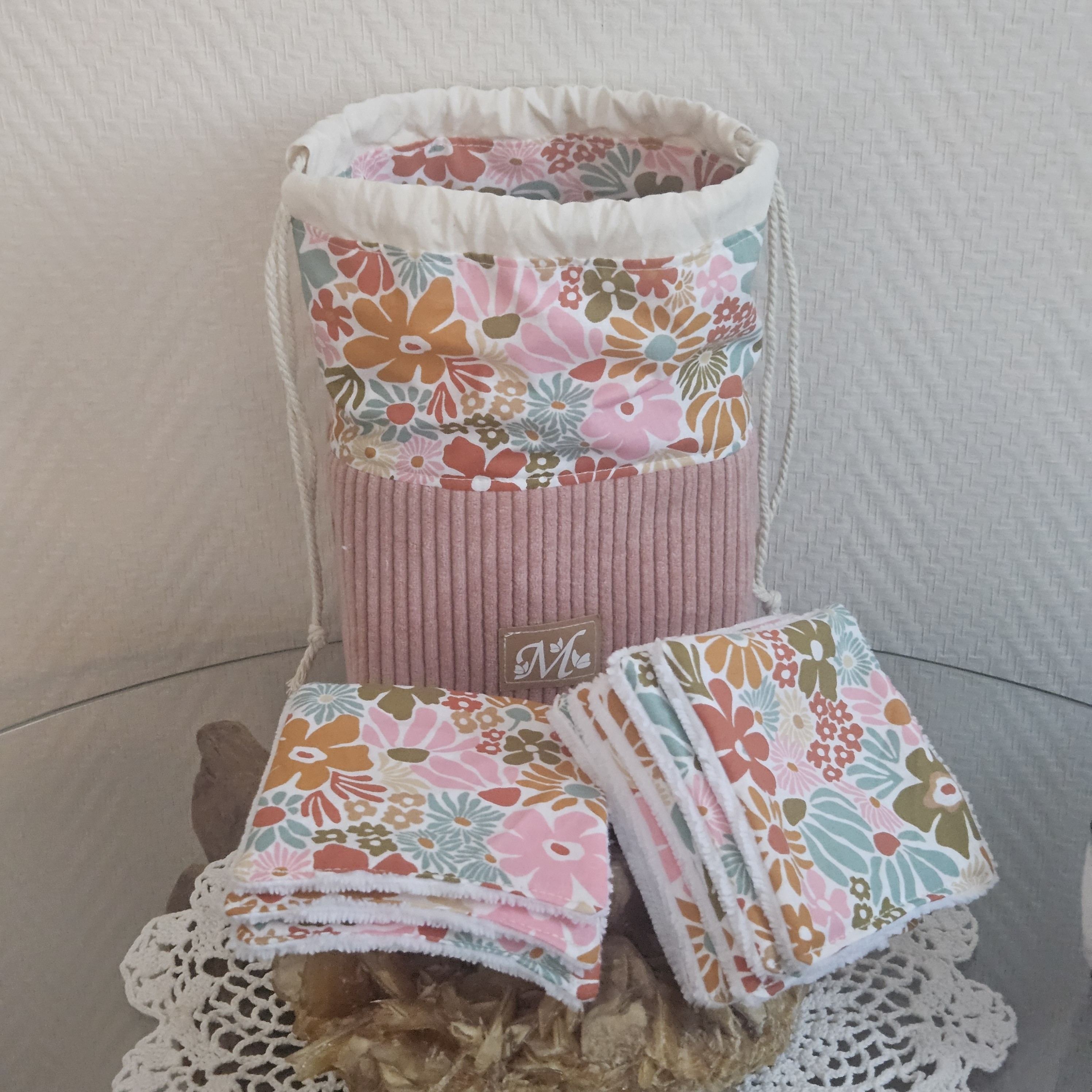 Une trousse pochon , qui fait panière avec ses 8 lingettes