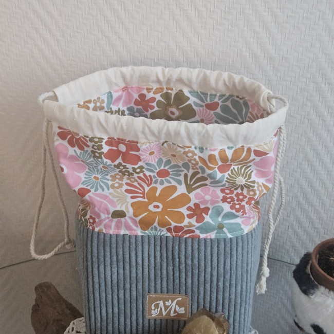 Le bas de la panière est en velours côtelé d’ameublement,