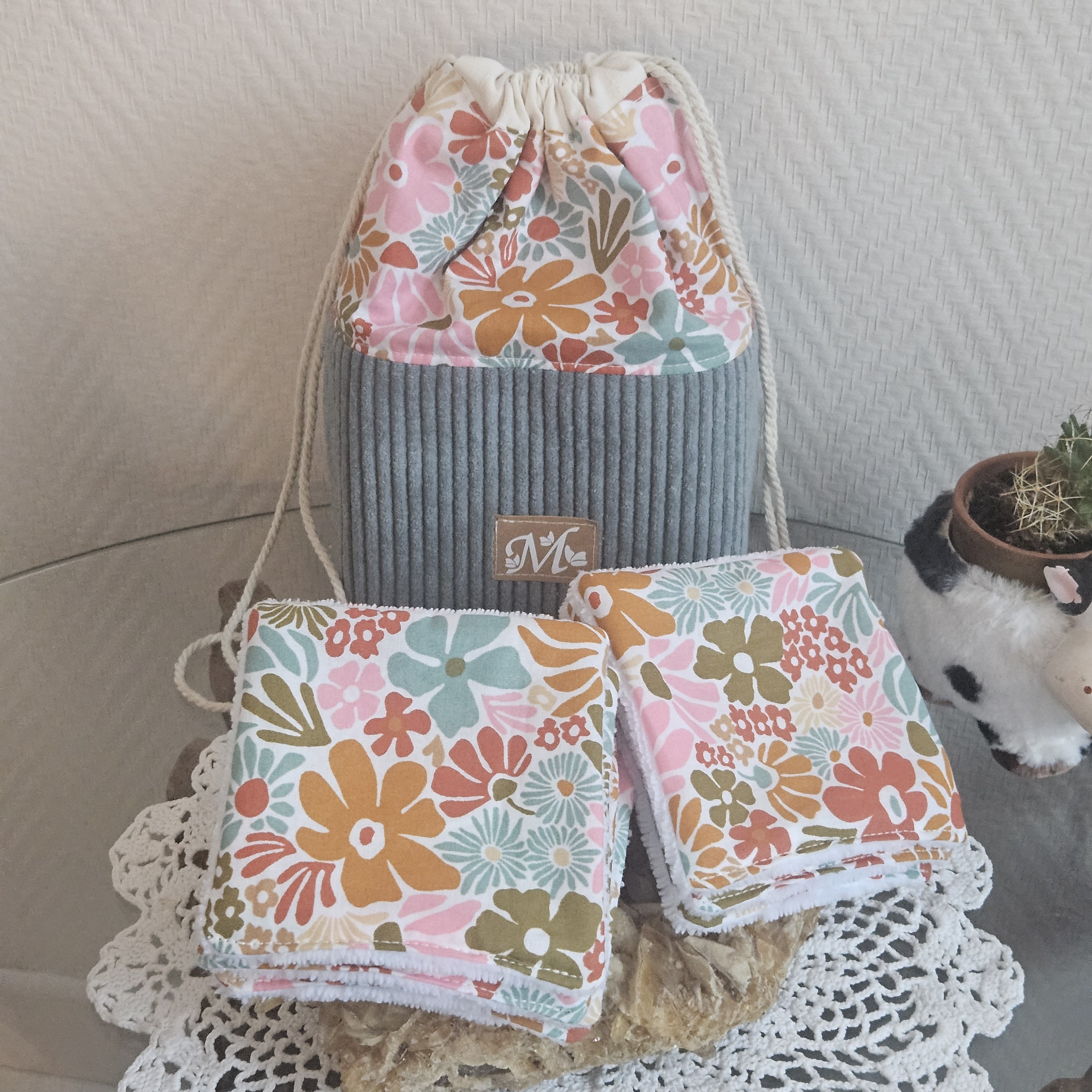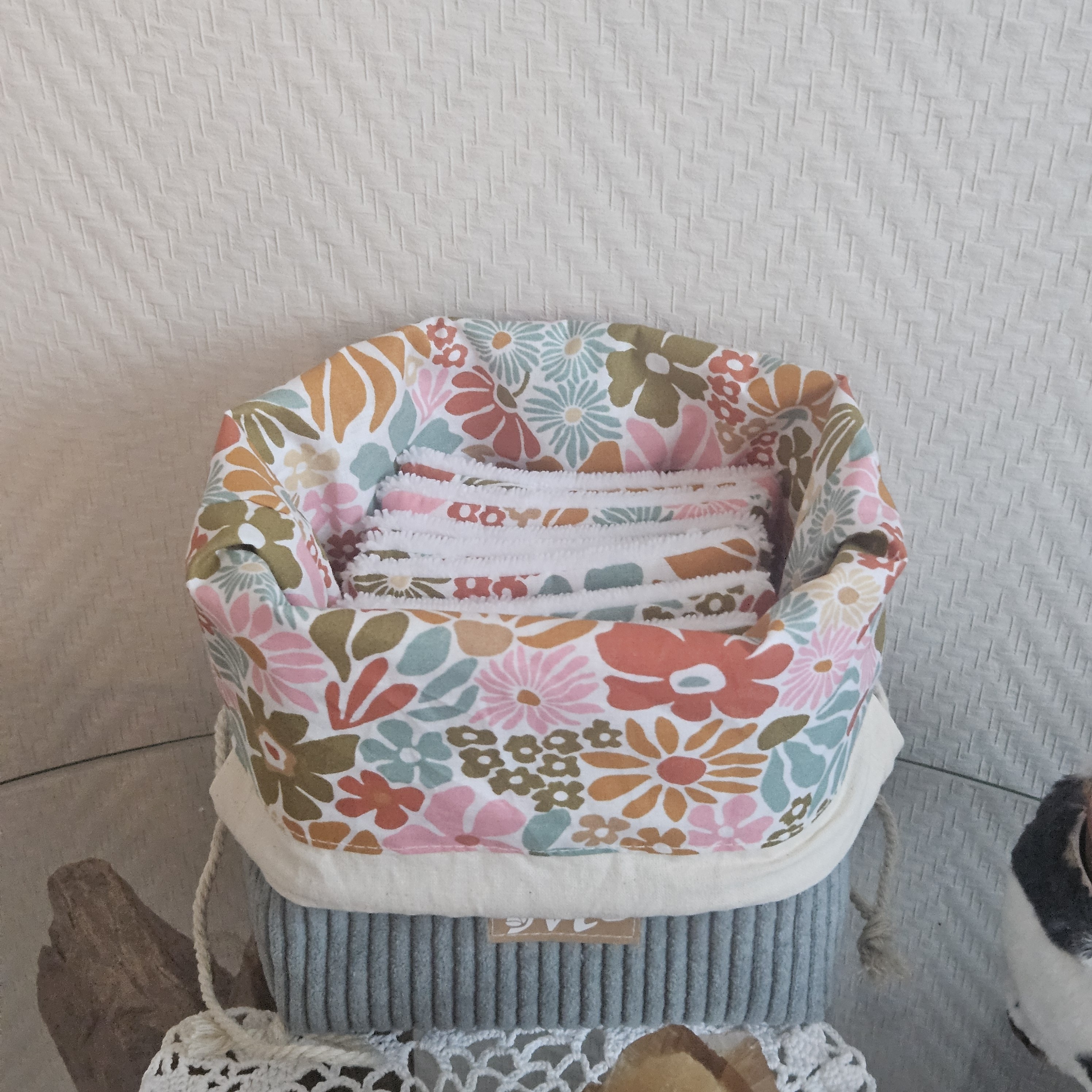 Une trousse pochon , qui fait panière avec ses 8 lingettes