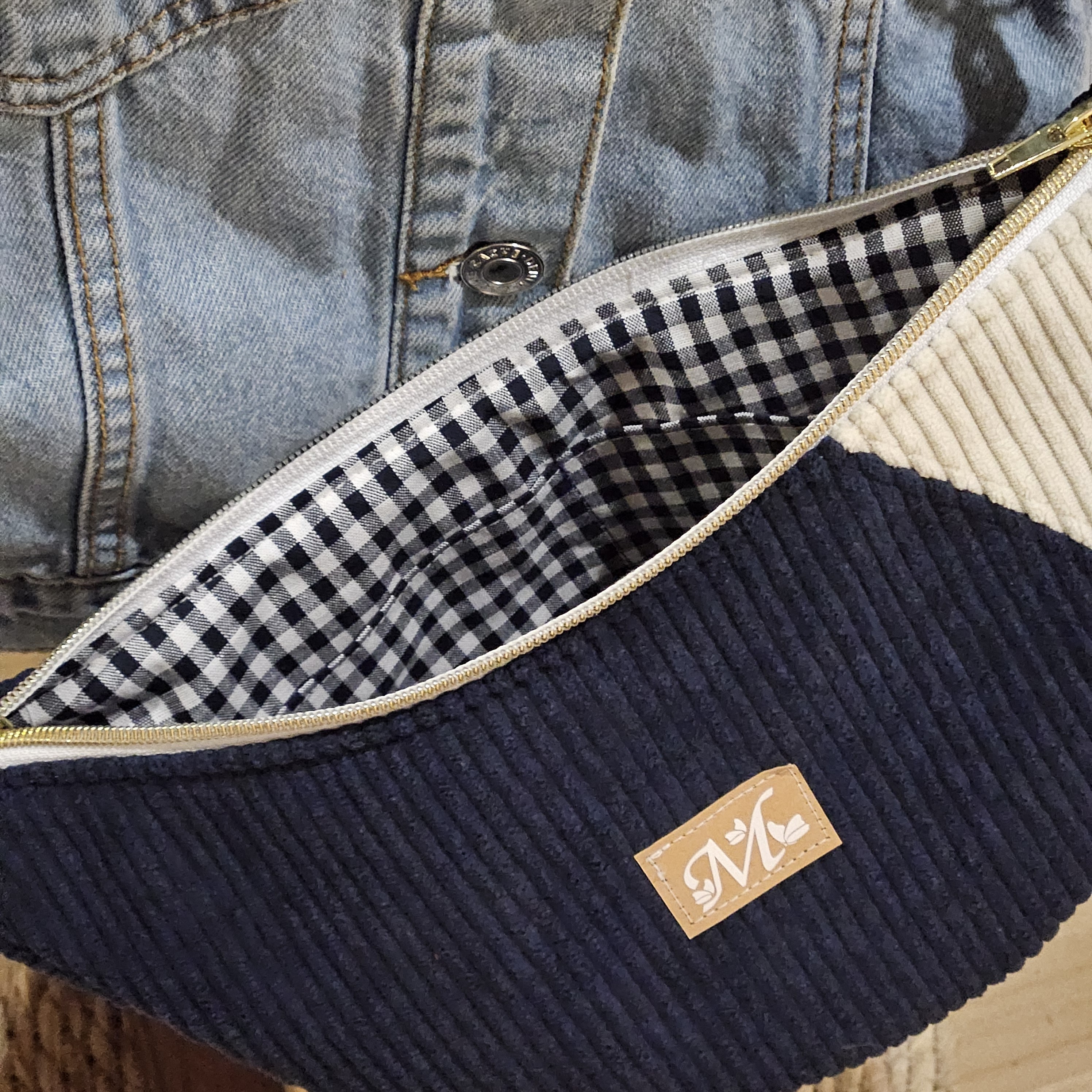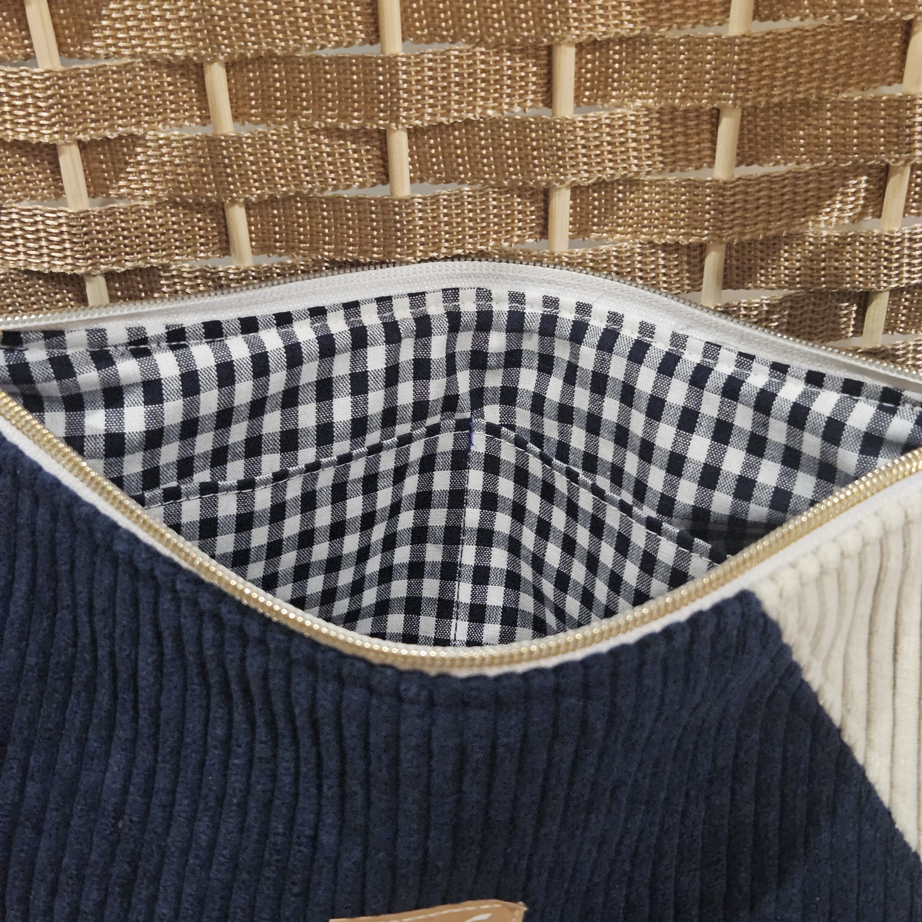 Hoshi en velours bleu marine avec contraste devant ivoire modèle vichy bleu marine