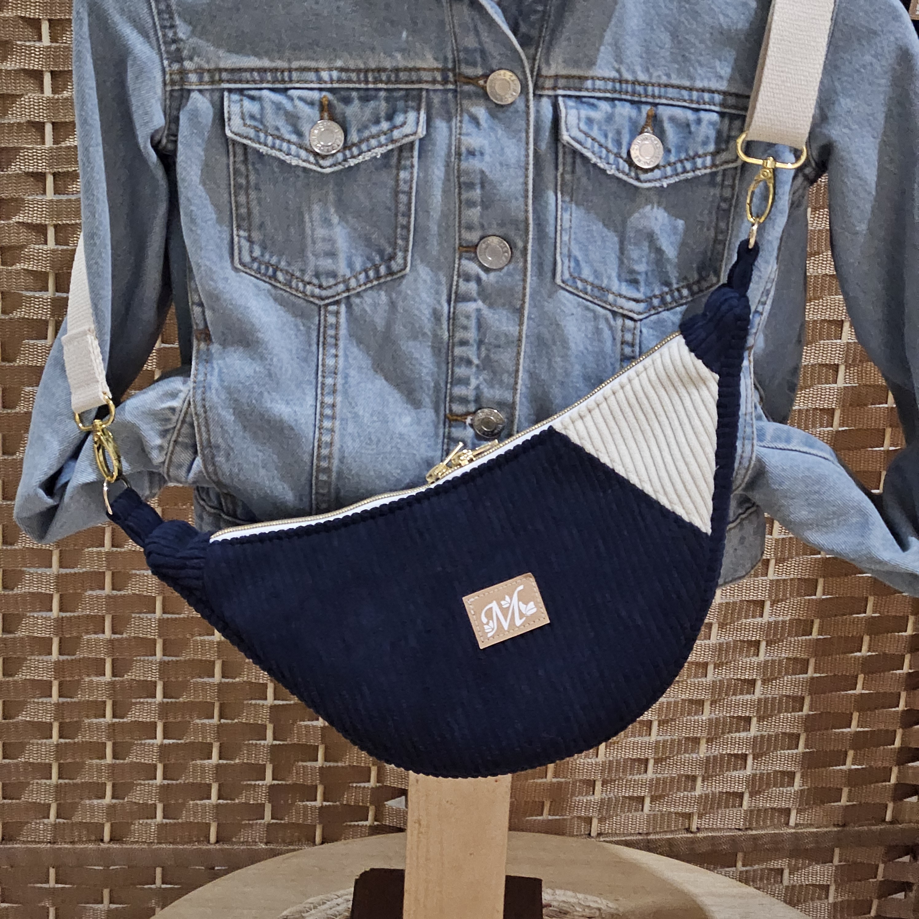 Forme demi lune , il est réalisé en velours côtelé d'ameublement.