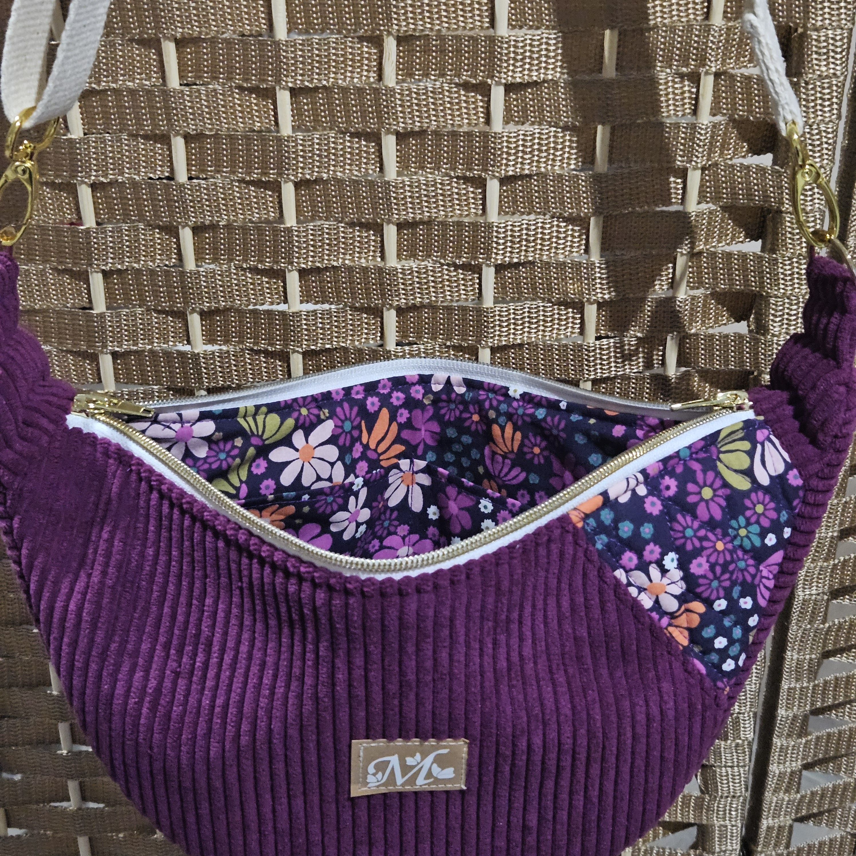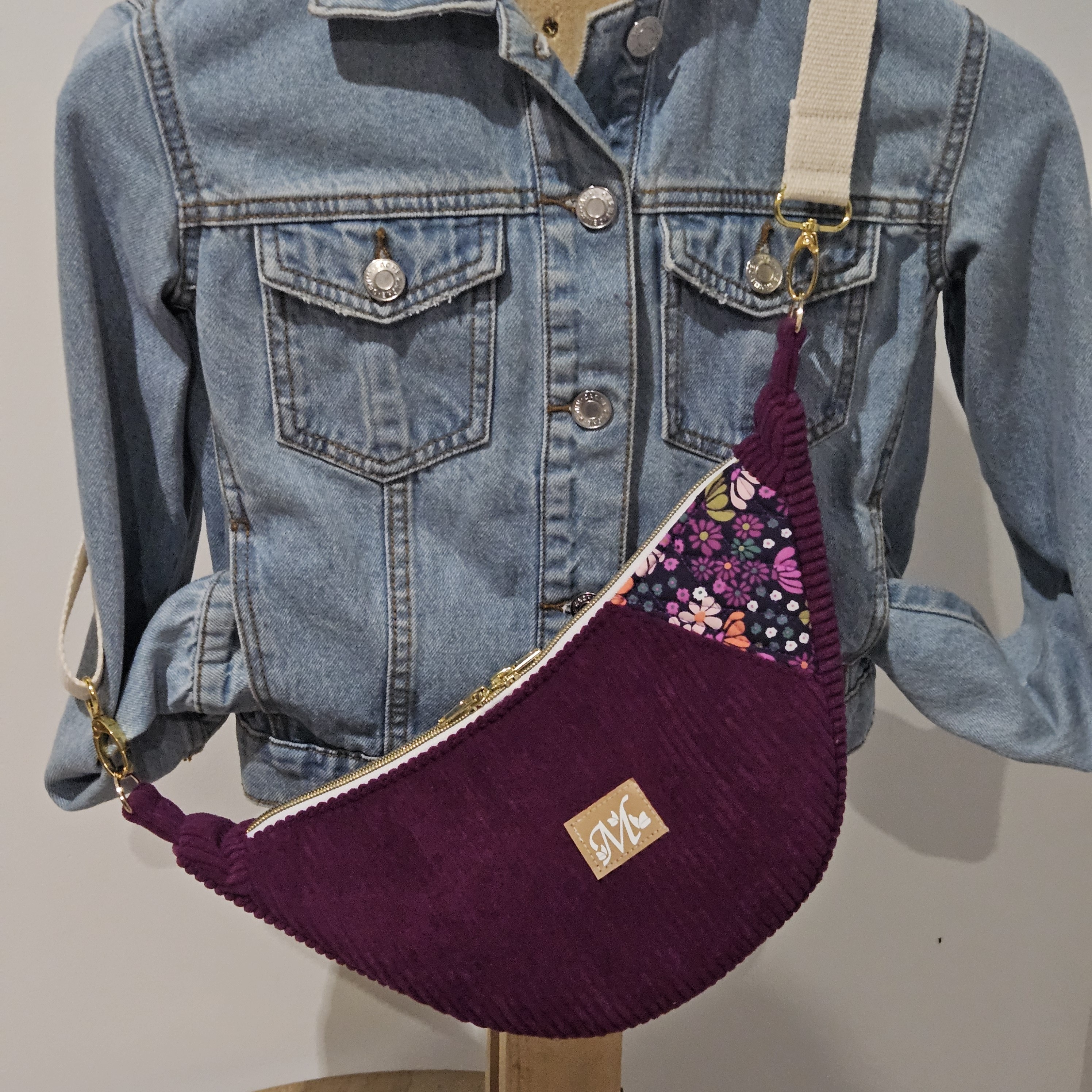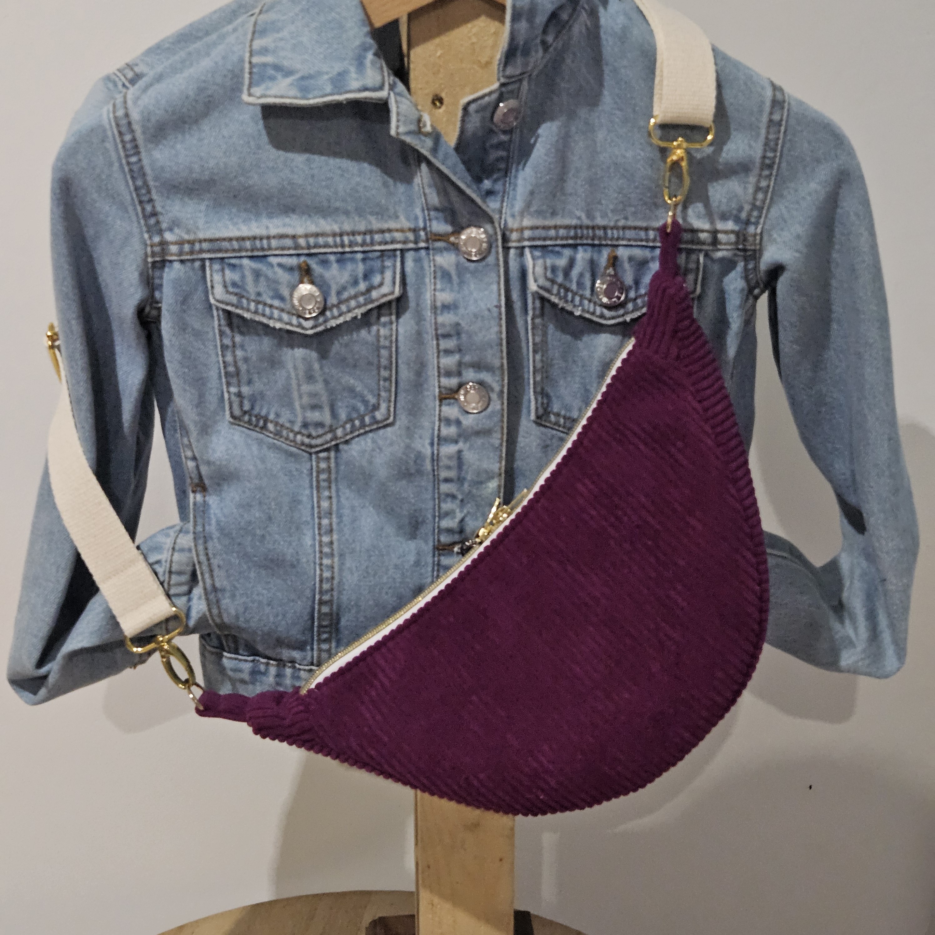 Hoshi en velours côtelé aubergine et contraste modèle Maria