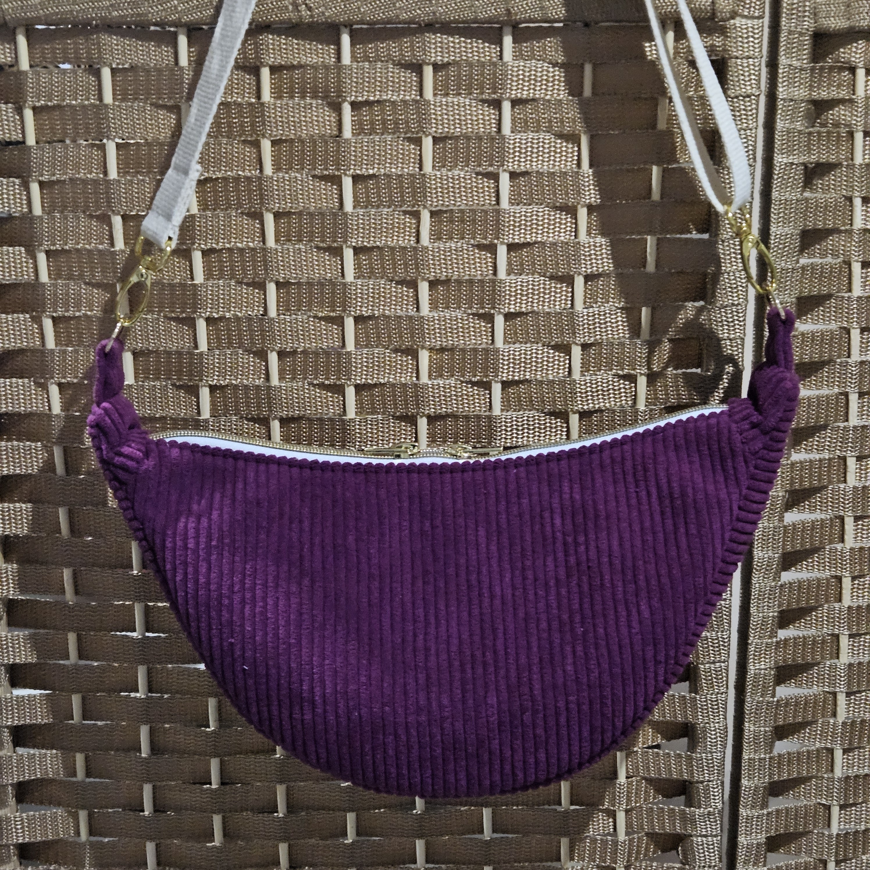 Forme demi lune , il est réalisé en velours côtelé d'ameublement.