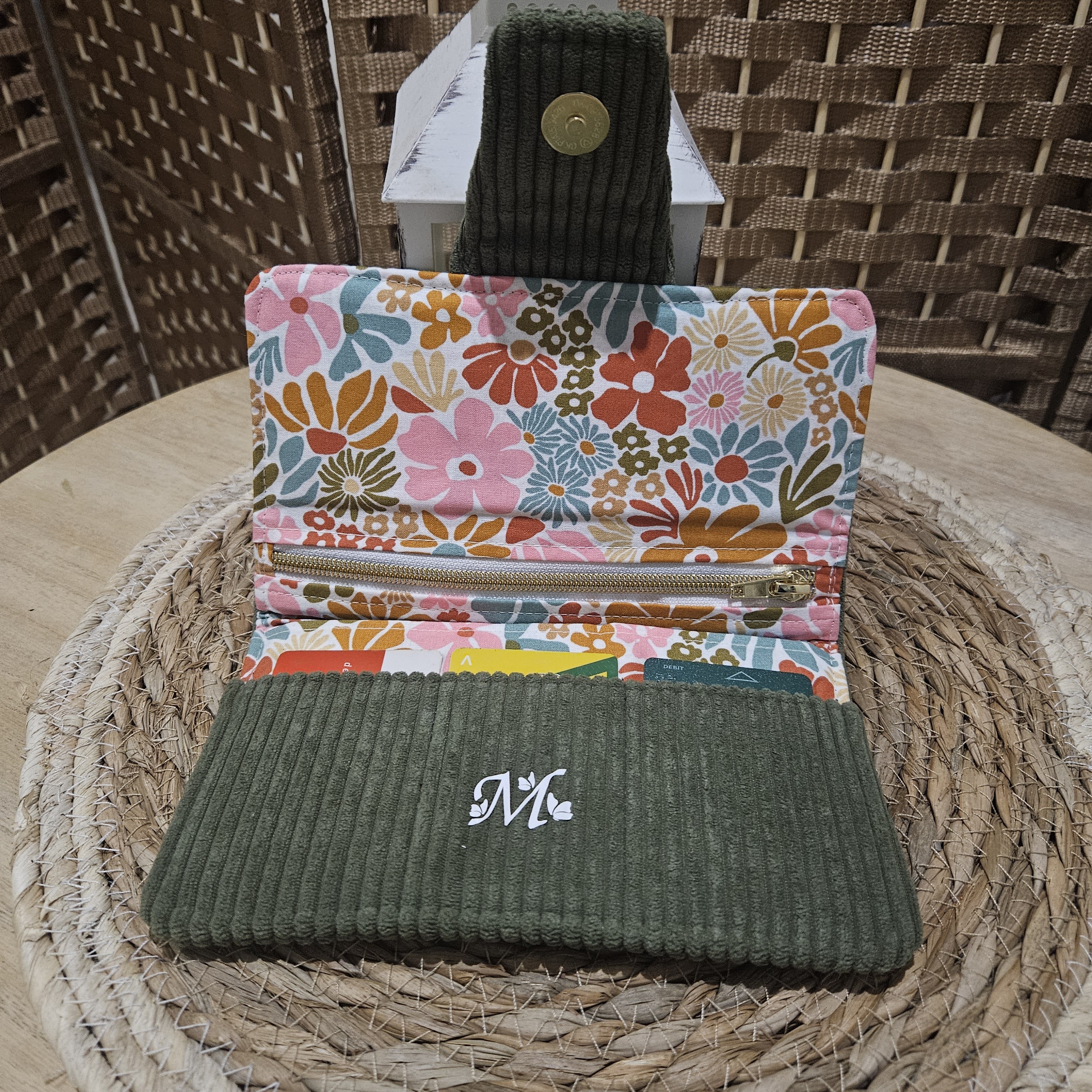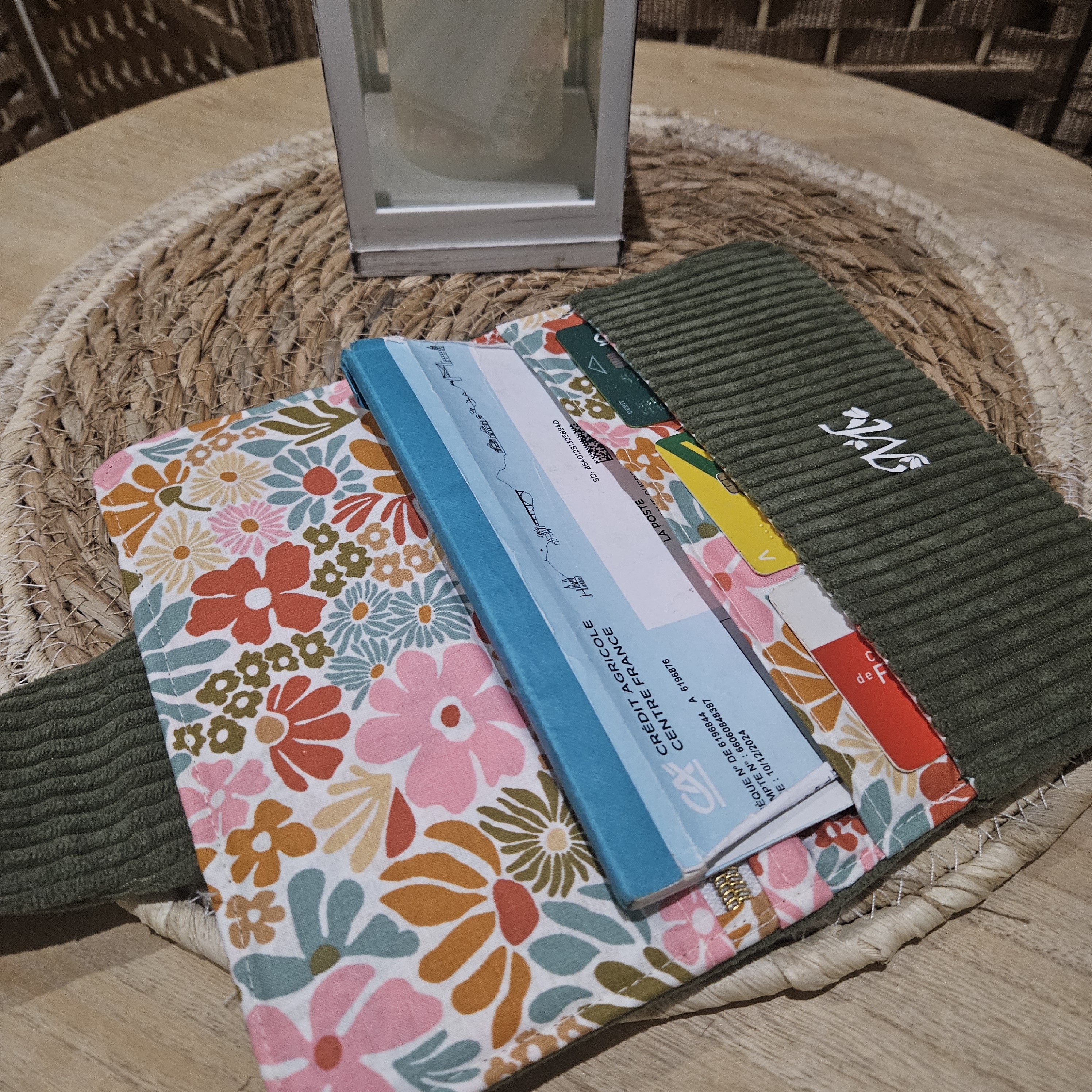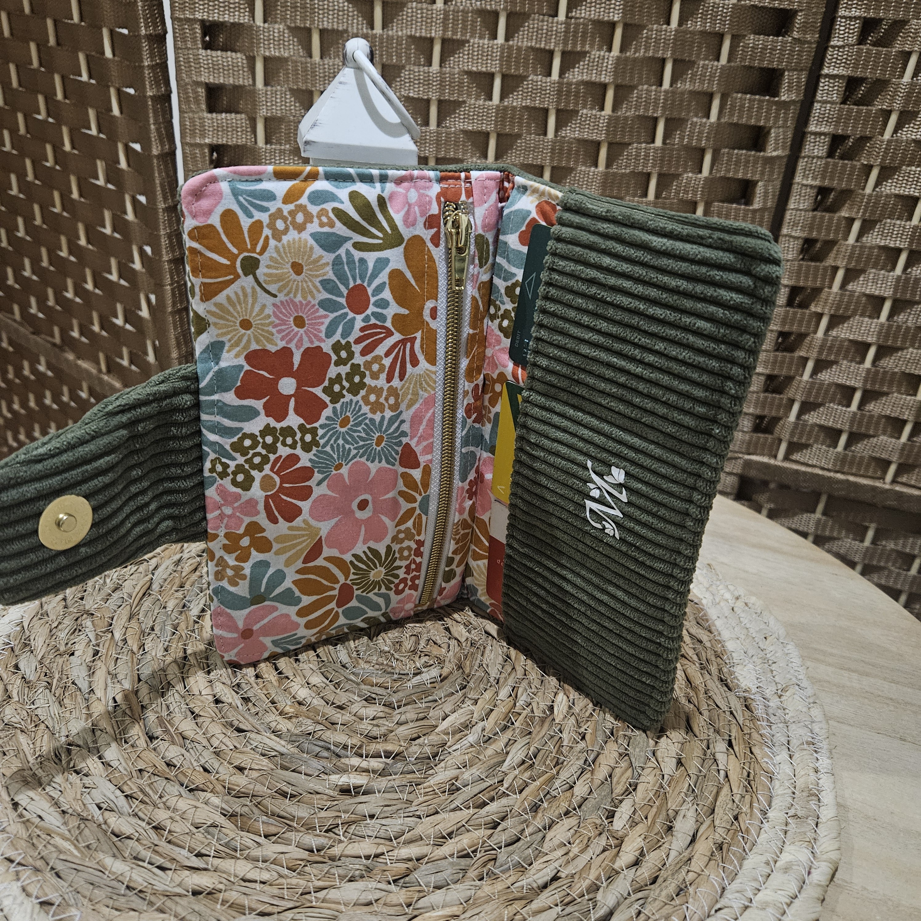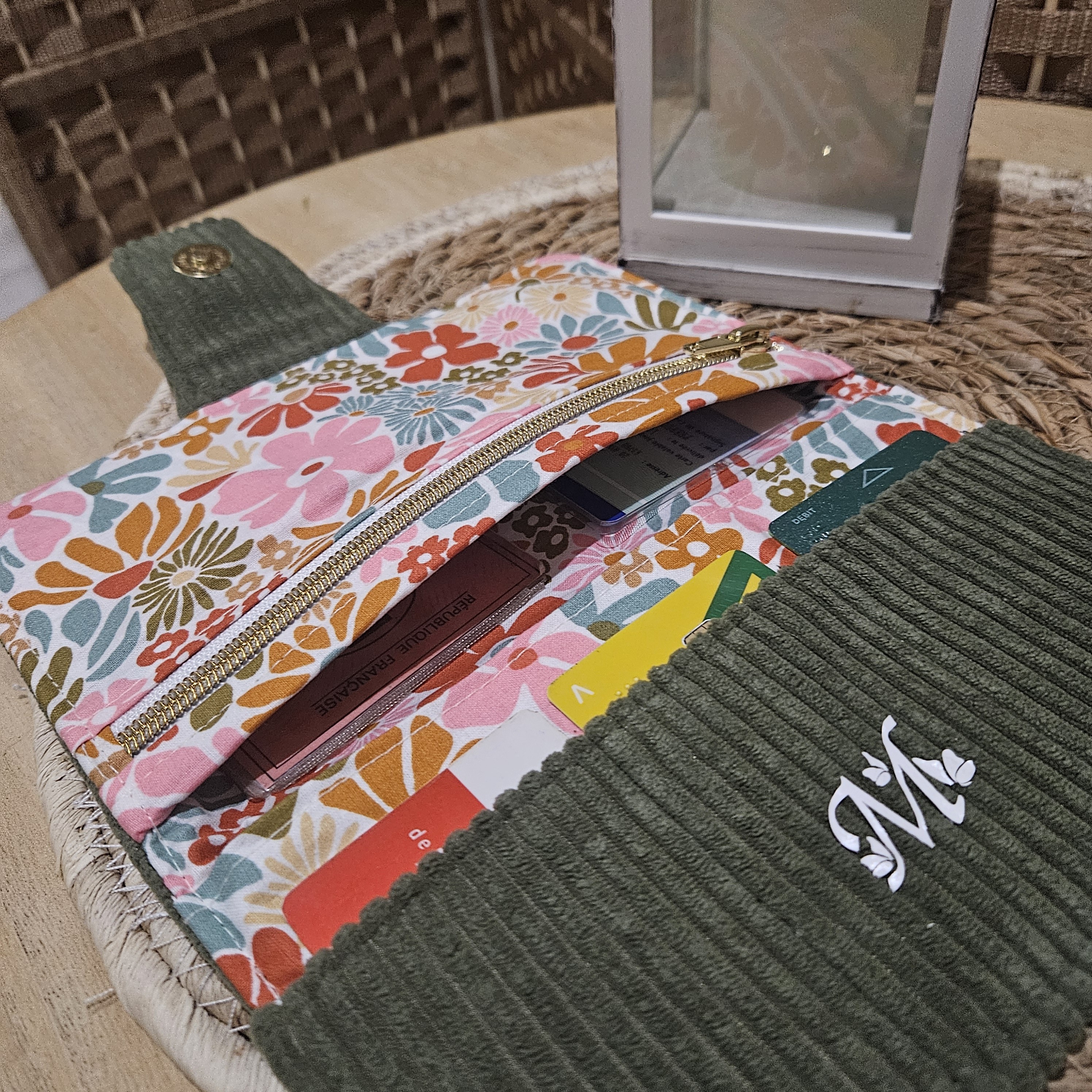 Extérieur et porte cartes : Velours côtelé d'ameublement