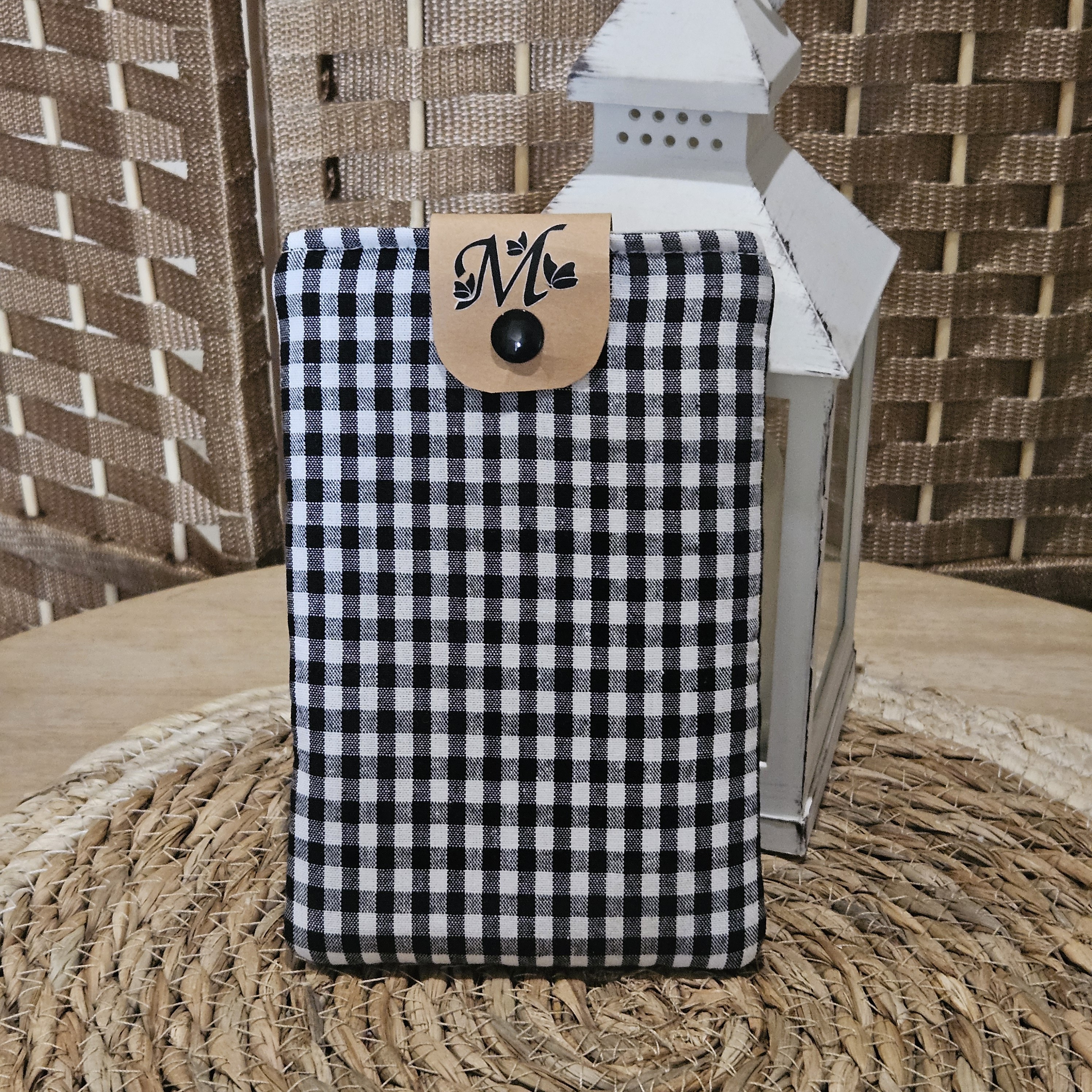 Pochette pour téléphone portable modèle vichy noir
