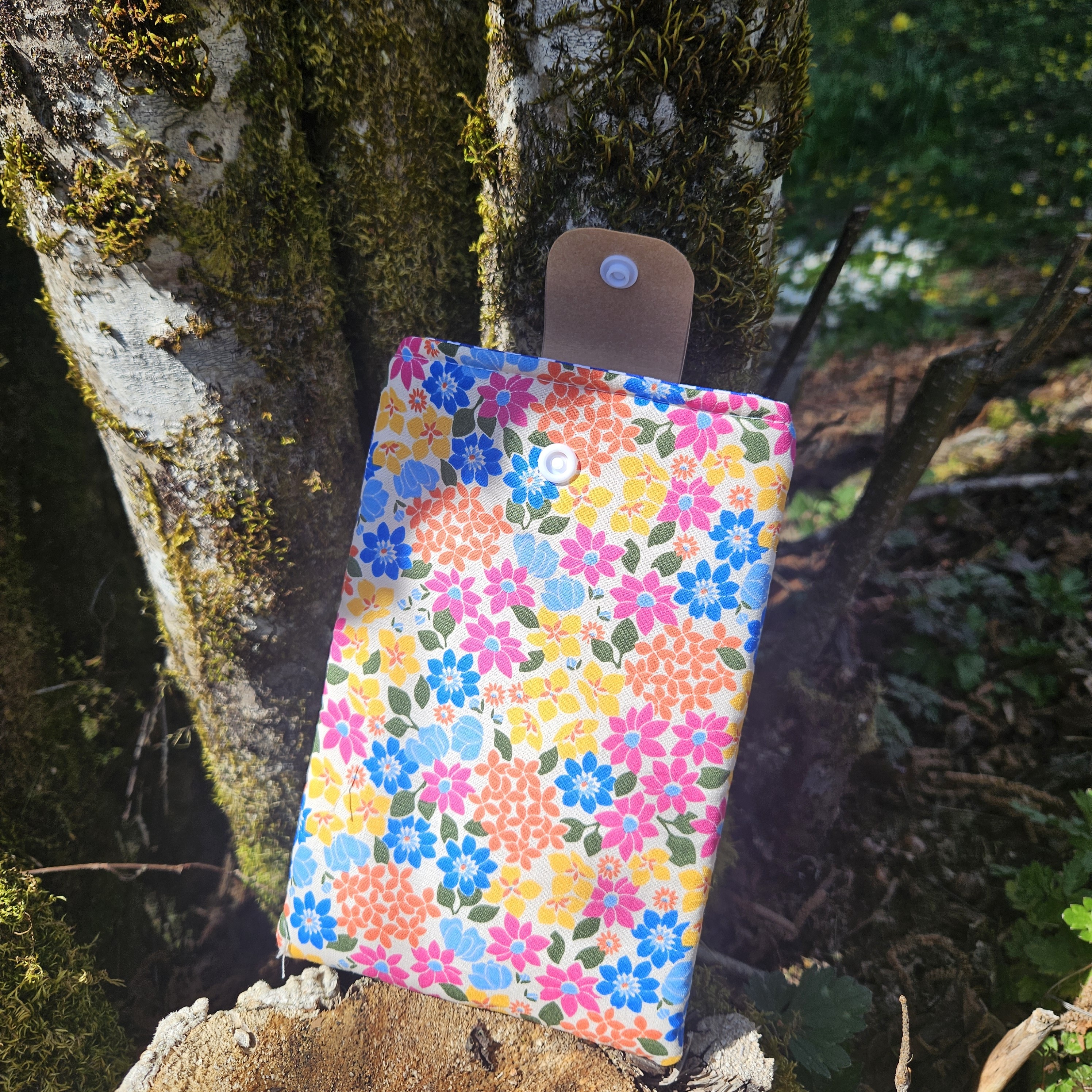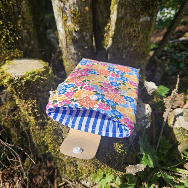 Réalisée en tissus coton imprimé pour l’intérieur et l’extérieur.