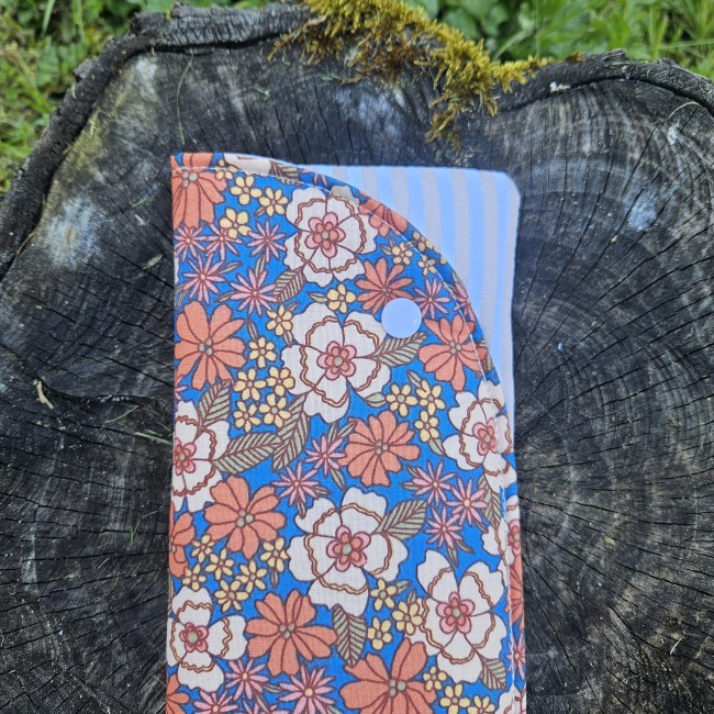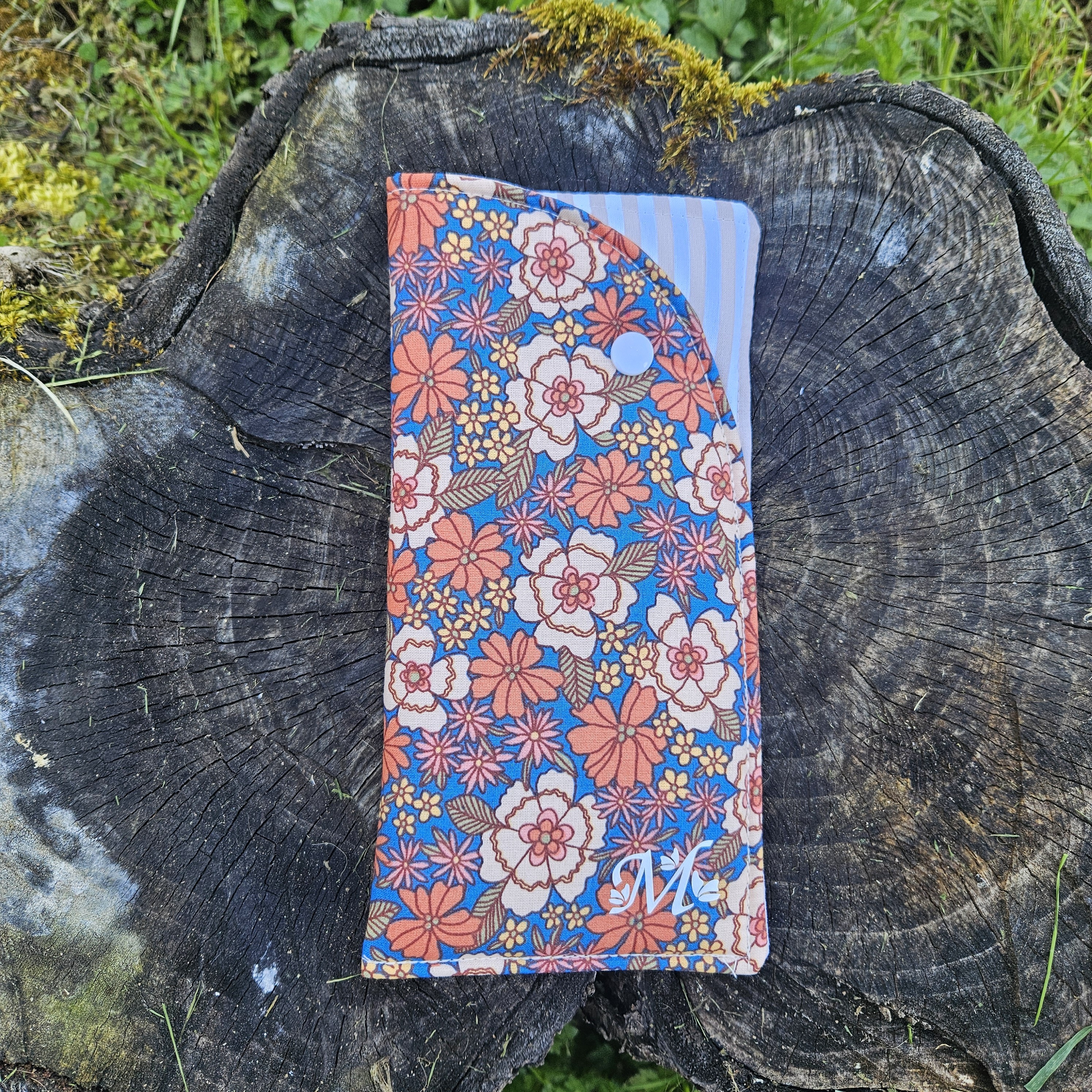 Étui à lunettes réalisé en coton imprimé pour l’intérieur et l’extérieur.