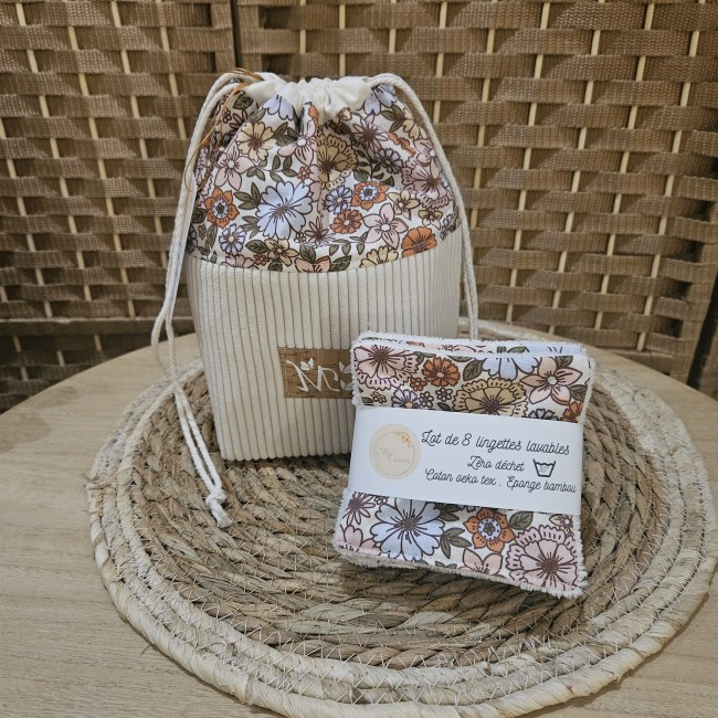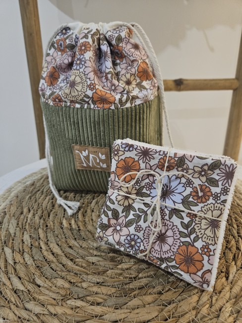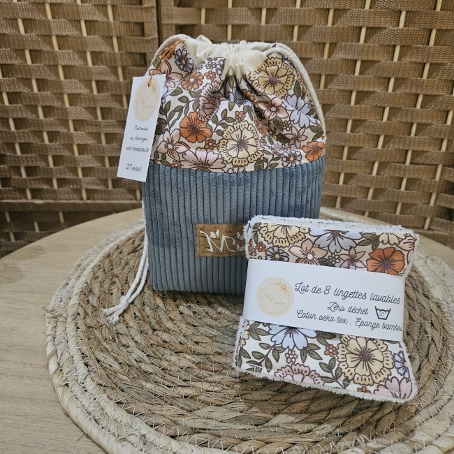 Lingettes lavables zéro déchet modèle olivier bleu + noir