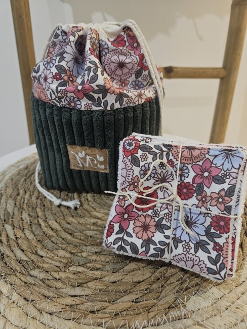 Panière démaquillante LOLITA modèle Brigitte rose +vert forêt